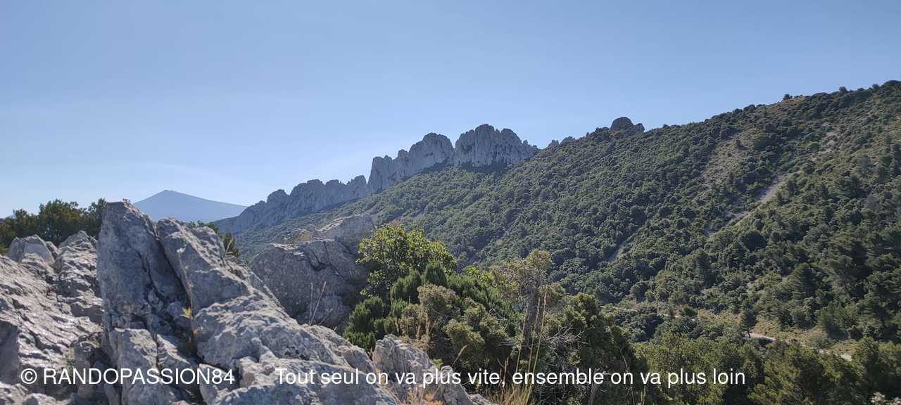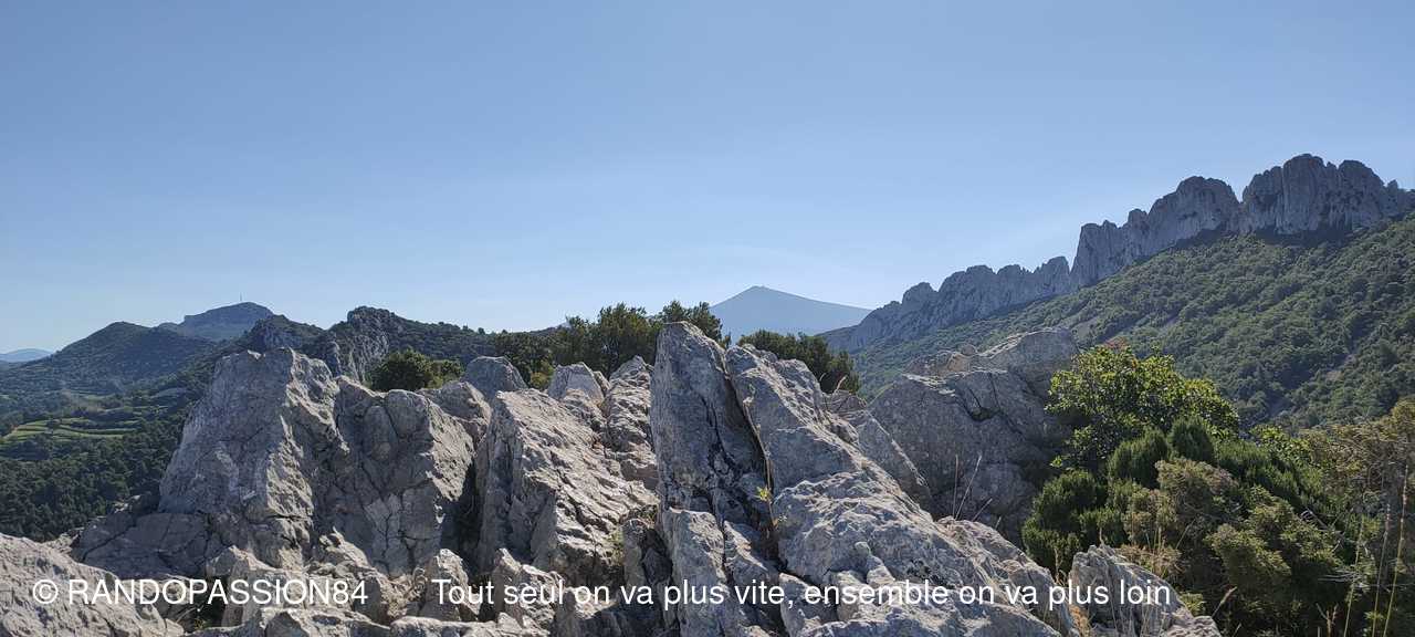 Nous avons eu le loisir de grimper au sommet du rocher du Midi qui est un sommet situé au-dessus du village de Gigondas dans le massif des Dentelles de Montmirail, premiers contreforts occidentaux des Monts de Vaucluse. Pourvu d'une table d'orientation, il offre un beau panorama sur les Dentelles de Montmirail, les Baronnies Provençales, le Ventoux, la Plaine de l'Ouvèze et de l'Aygues ainsi que sur les Cévennes si la visibilité le permet.