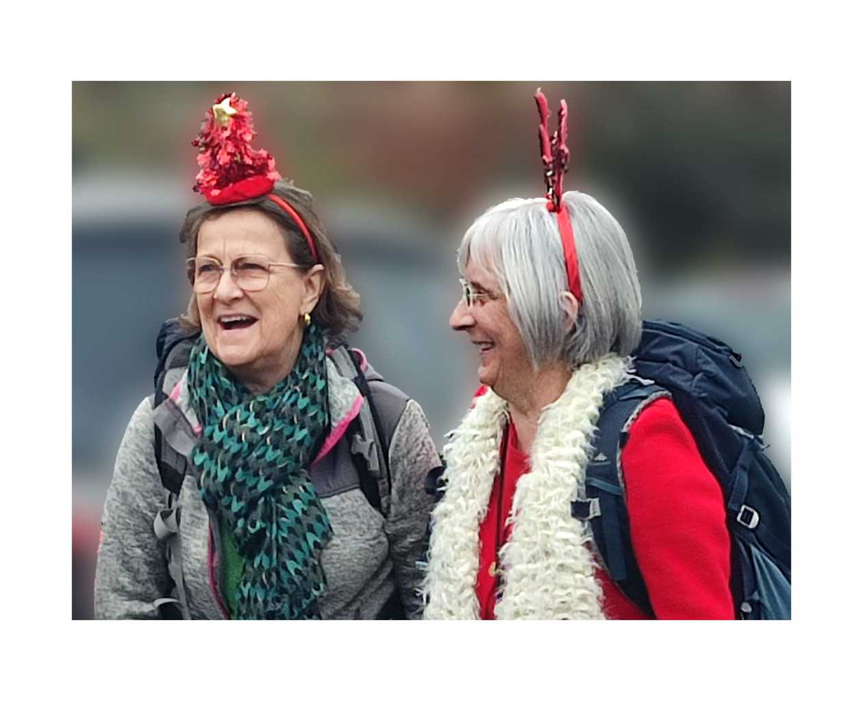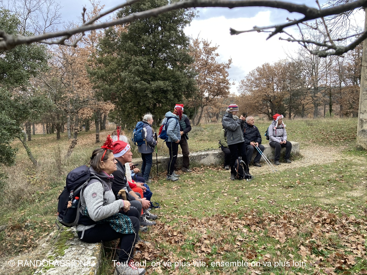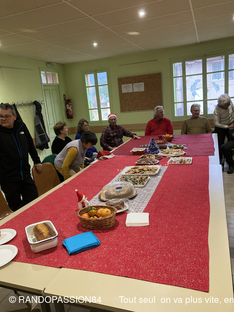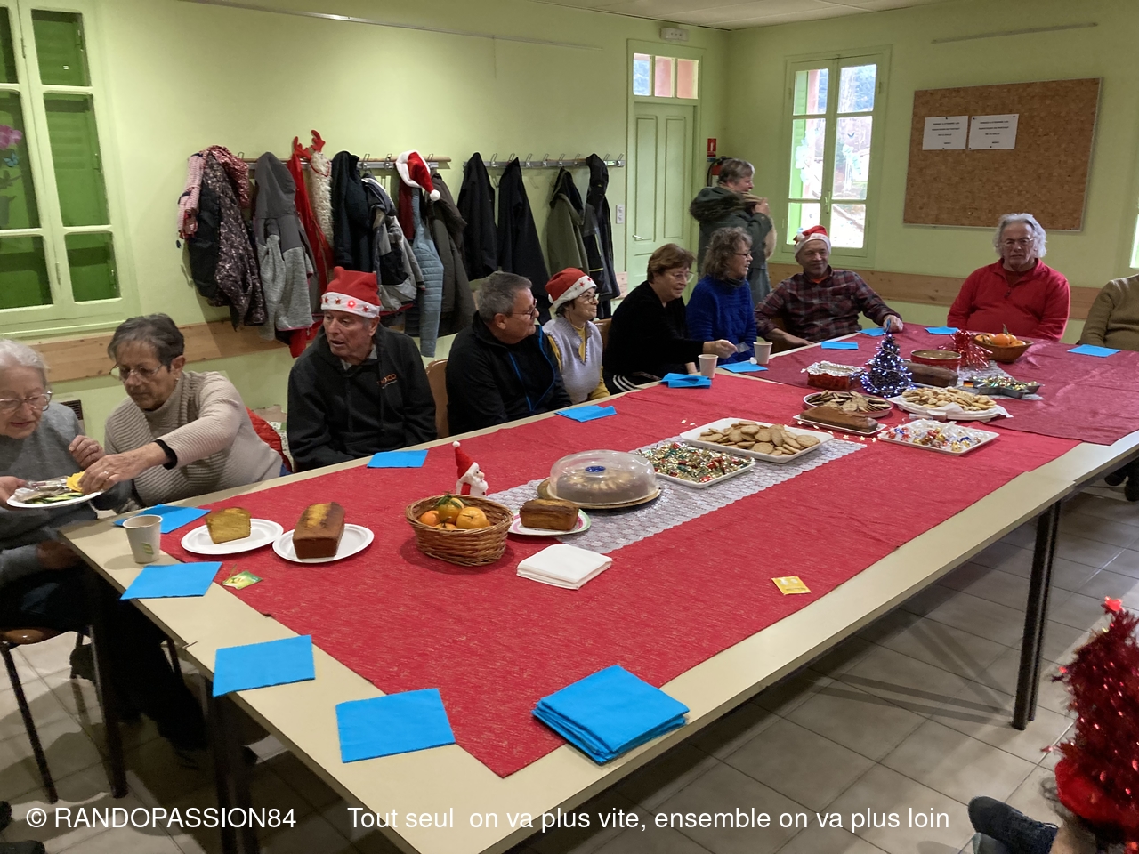 Pour cette dernière randonnée de l'année 2024 les adhérents ont joué le jeu : entre les bonnets, les pulls de Noël, les vêtements rouges et même les guirlandes lumineuses, notre groupe de Gais Lurons n'est pas passé inaperçu sur les chemins d'Entrechaux. D'ailleurs notre passage devant l'école a déclenché quelques hurlements de joie.