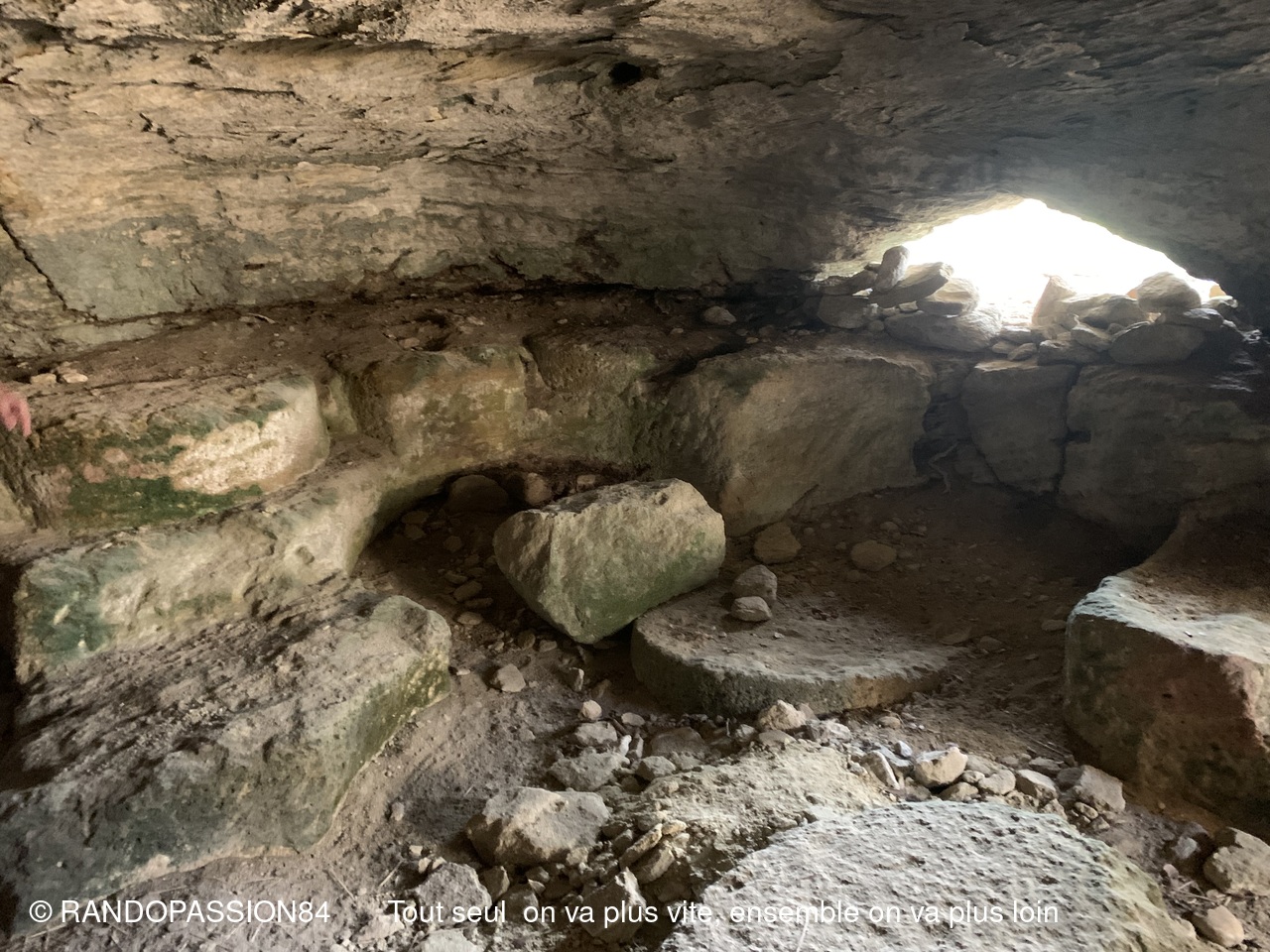 Mais le plus important était de découvrir, les abris sous roches, la ferme fortifiée avec notamment un four à pains quasi intact, la carrière de meules, le château, la galerie-canal pour l'aduction d'eau, et bien sur le village troglodyte et de magnifiques paysages.