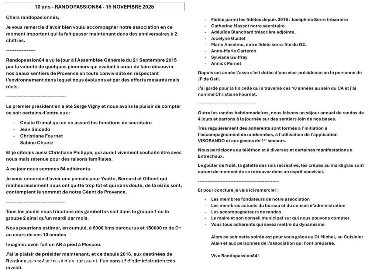 Ce samedi 15 novembre nous avons fêté les 10 ans de randopassion84 à la salle polyvalente d'Entrechaux.