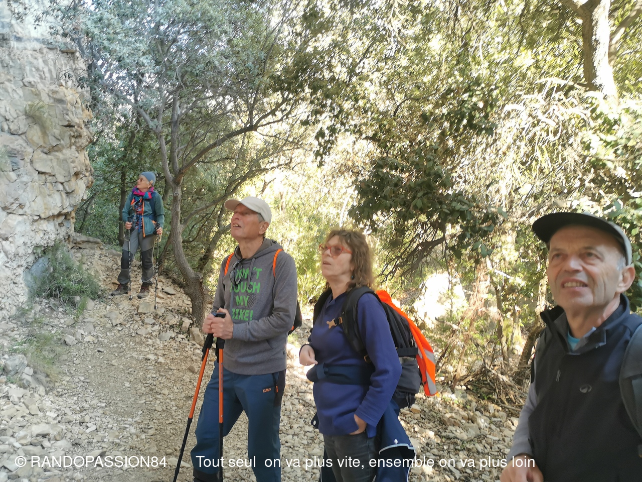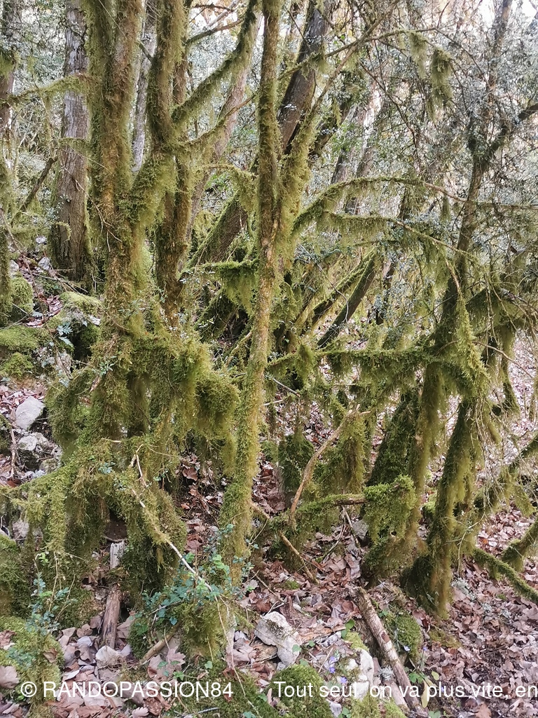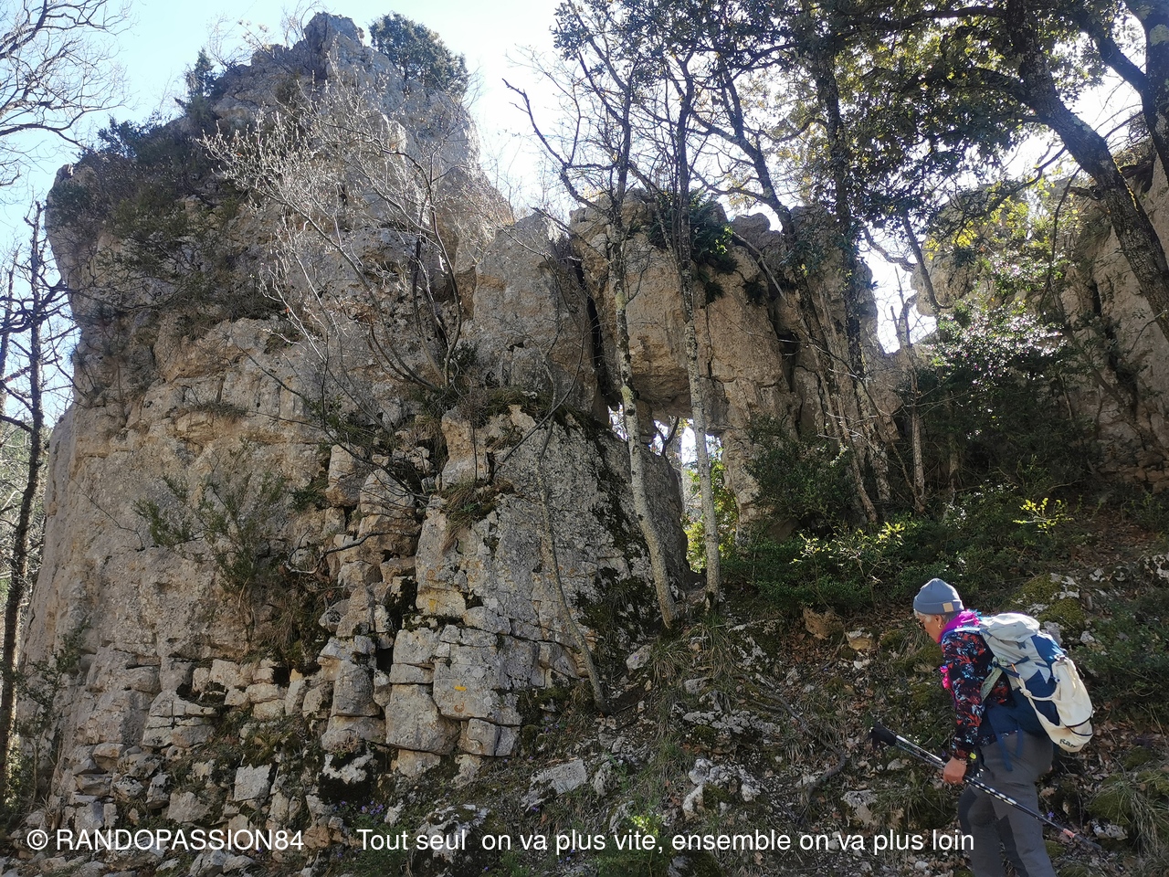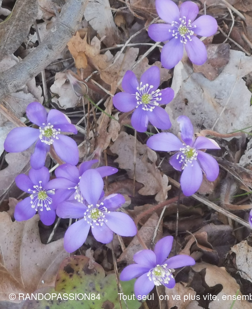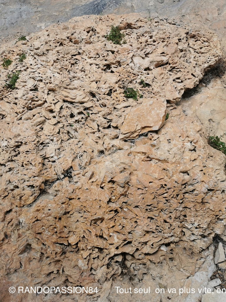Cette fois-ci, nous nous en sommes pris au versand sud de notre montagne préférée, à l'est de Bédoin. Après avoir résisté à l'appel de la neige, nous avons évolué à mi-hauteur, de quoi nous mettre l'abri d'un mistral glacial. Avons découvert une très belle bergerie récemment rénovée. Le chemin, autrefois beaucoup utilisé à en juger par les profondes entailles de roues dans le sol pierreux, nous a mené à l'entrée d'un village abandonné... en fait des formations rocheuses déguisées en vestiges qui n'en étaient pas ! Sous-bois envahis de mousses et de lichens. Partout ailleurs couleurs et fleurs printanières ( qui se prennent pour des divas et ne se laissent photographier qu'au prix de quelques contorsions!!) Rochers creusés par le travail patient d'un cours d'eau disparu : dangereuse incitation à les escalader. Nous nous sommes abstenus ! Sur une falaise, une exhortation : " Arrêtez de râler", nous avons obtempéré ! Puis une longue descente dans les cailloux masqués par les feuilles mortes. Mais une fois de plus ( et c'est là que le fameux Virage des Bruns nous attendait au tournant) : les chutes sont et restent imprévisibles. Le tout est d'être bien accompagné/e. Bon rétablissement à la main d'Yvette. Merci à Daniel pour la découverte de ce coin sauvage du Ventoux. Nous étions 11 randonneurs en G2.