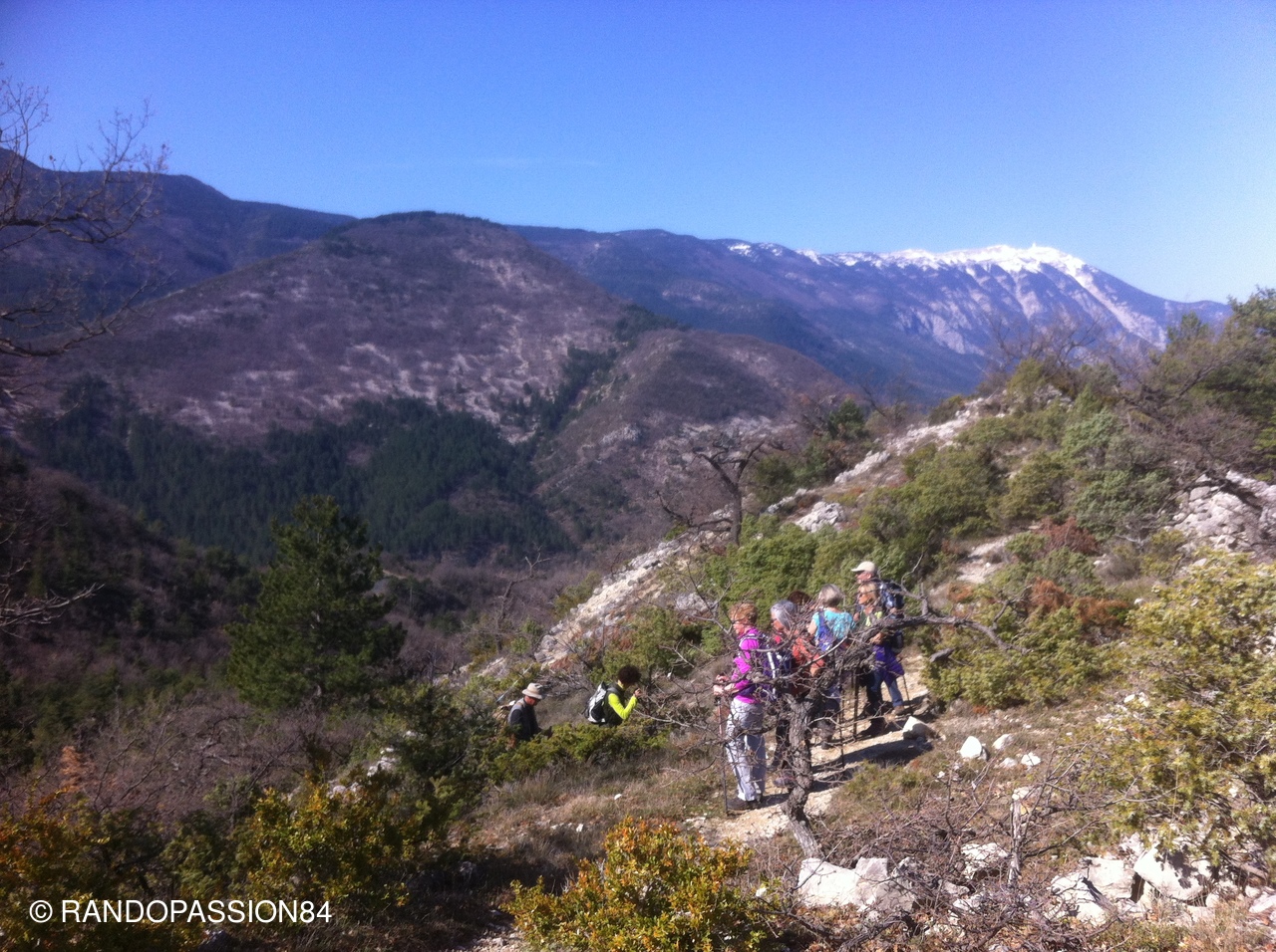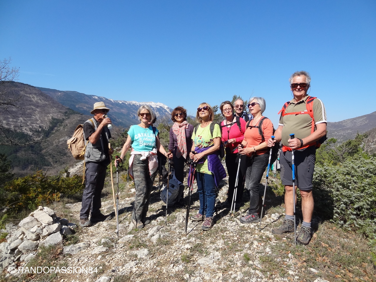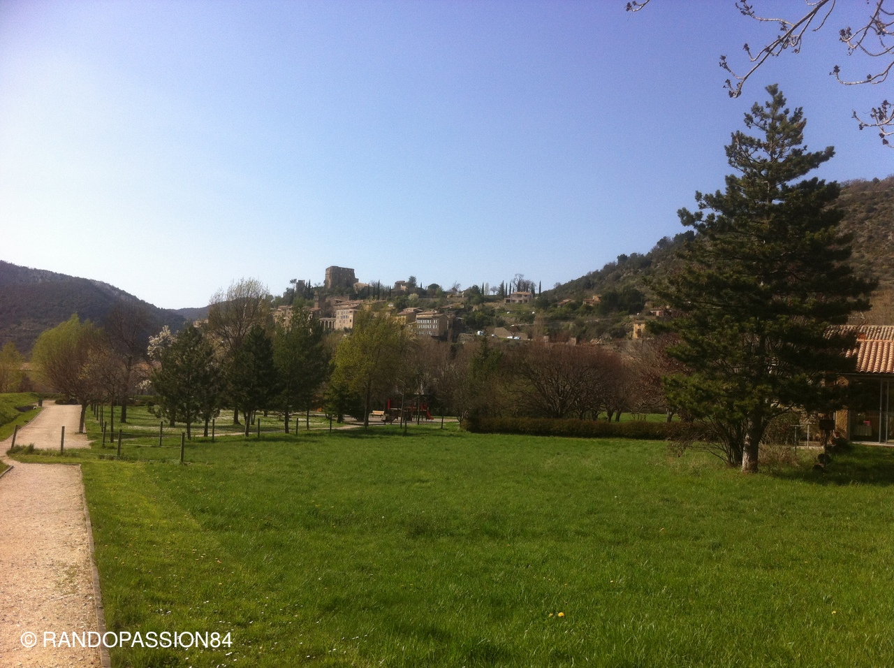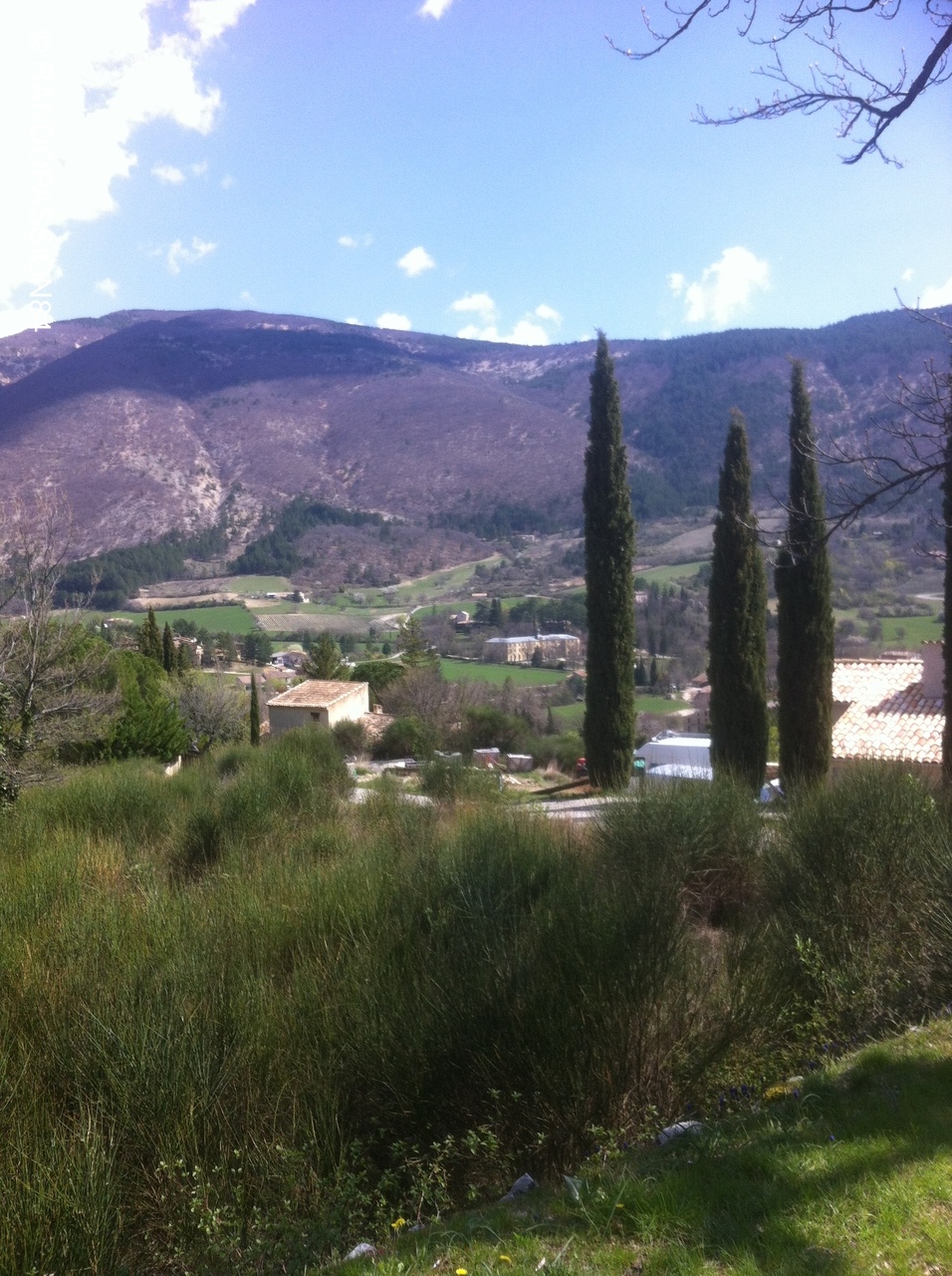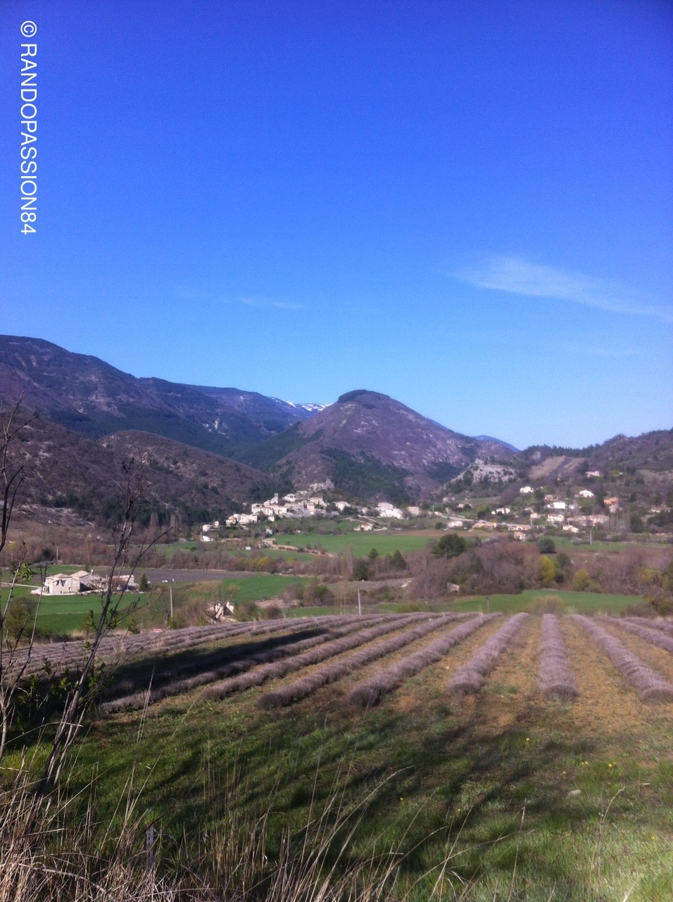 Montbrun les Bains....village accroché à la montagne, dans une nature magnifique,  le soleil en option...on en prend plein les yeux ! des champs de lavande aux champs de thym, des prairies, de l'eau, le Toulourenc, au loin les montagnes d'Albion, le col de l'Homme Mort, montagne du Buc,le Ventoux enneigé....le décor est planté....un peintre ne saurait trouver que l'inspiration ! Montbrun les Bains est également une station Thermale.... .....C'est dans cet environnement que François nous conduit pour 14 kms dénivelé 415m, passer le village de Reilhanette, le Tour de l'Ubac...un casse crôute.., la visite des Fontaines dans le village, un petit rafraîchissement sur la place dominante offert par François à la santé de Margot 1 an, et un retour Entrechaux Vaison....Une rando à refaire fin juin à la floraison des lavandes....François, un seul mot, MERCI pour tout !  (tulipes sauvages dans les champs de thym)...a Bientôt, Cécile.
