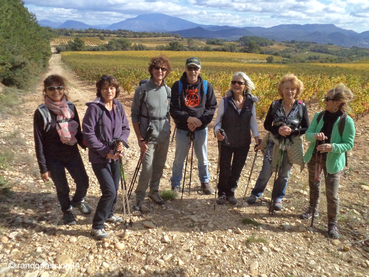 Rasteau, petite commune à quelques kms de Vaison, renommée pour ses bons crus et notamment son vin apèritif......mais les dégustations n'étaient pas au programme....... c'est une randonnée qui l'était ! boucle de 13 kms entre coteaux et forêt de chênes, nous évoluons sur un terrain variè à un bon rythme.... vues sur les villages de Visan, Tulette...le Ventoux.....une confidence ? beaucoup de ramasseurs de champignons sur la montagnette...un signe ! ..à vos cabas !.... - merci à Serge notre guide, à bientôt, Cecile.