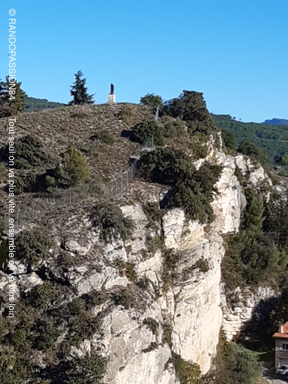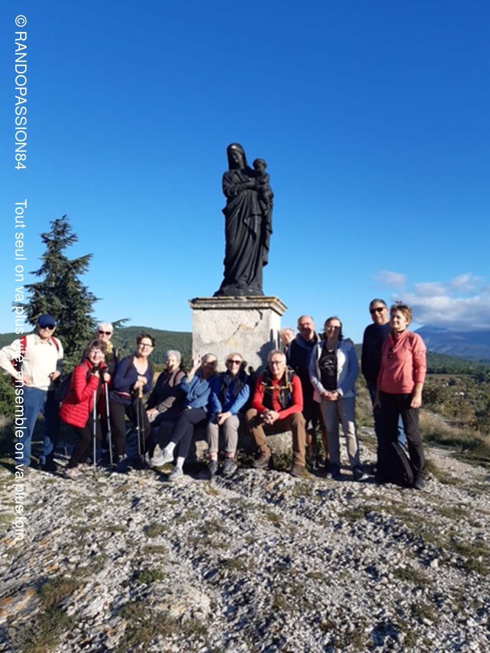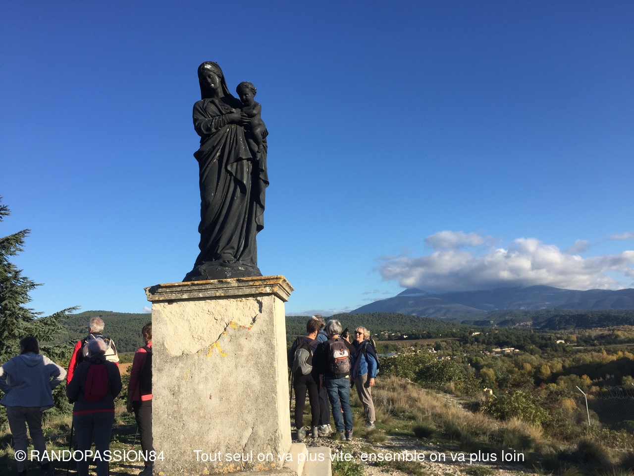 Nous avons terminé par une petite ascension sur la colline de Sus Auze qui nous a mené à la vierge noire. Le moins que l'on puisse dire, c'est qu'elle bénificie en toile de fond d'une magnifique vue sur le Ventoux et de l'autre côté d'un point de vue unique sur le Vieux Vaison.