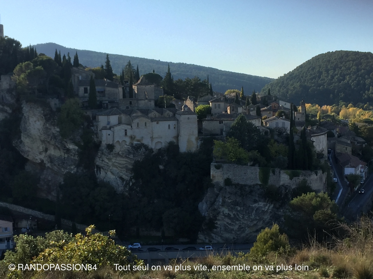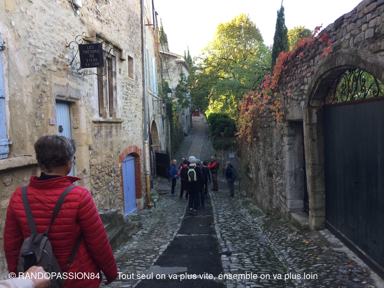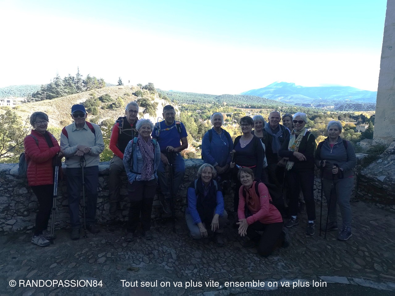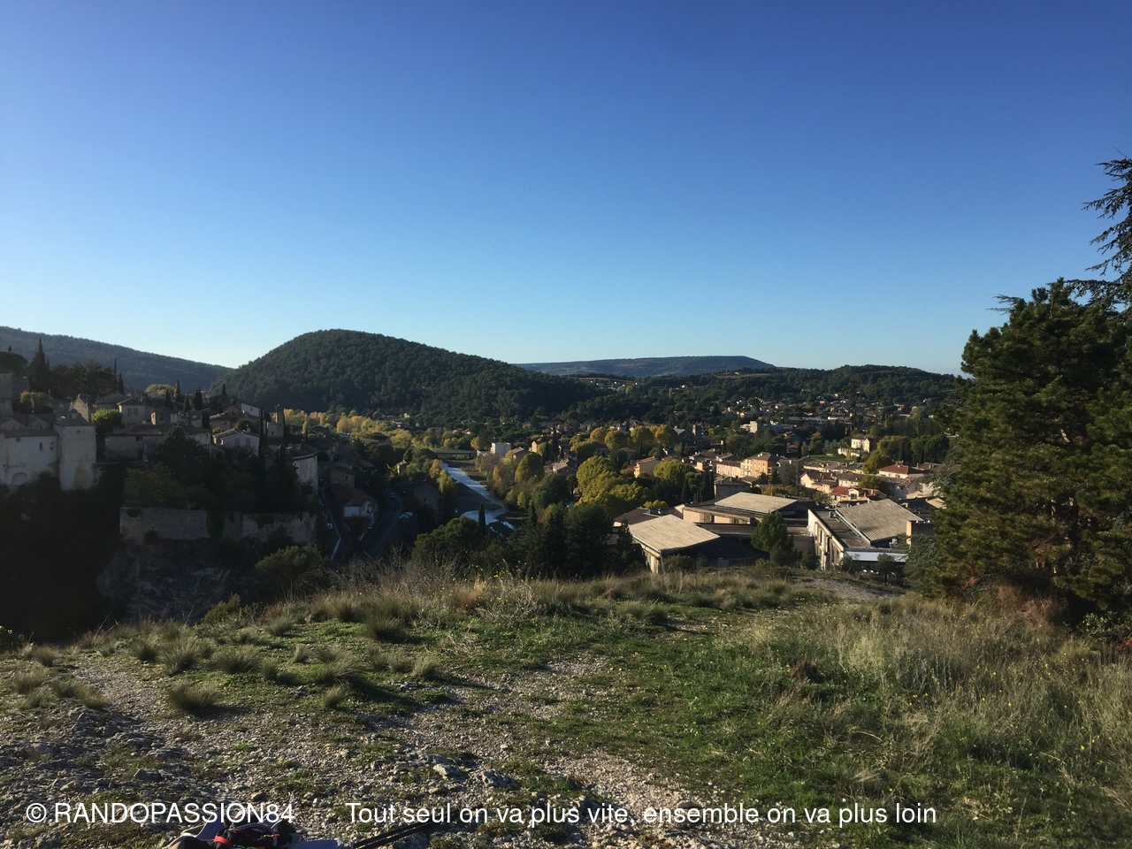 La pluie étant tombée abondamment la veille, il n'était pas raisonnable d'envisager nos randonnées prévues à Uchaux . C'est pourquoi Fabienne nous a concocté une randonnée surprise à la découverte ou redécouverte de Vaison La Romaine, avec à la clef une remontée dans le temps.