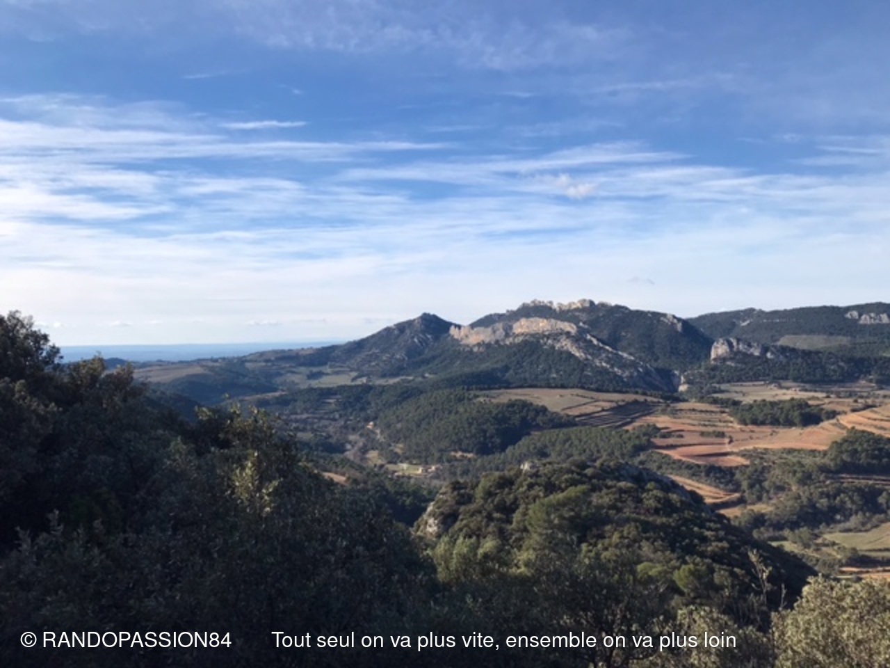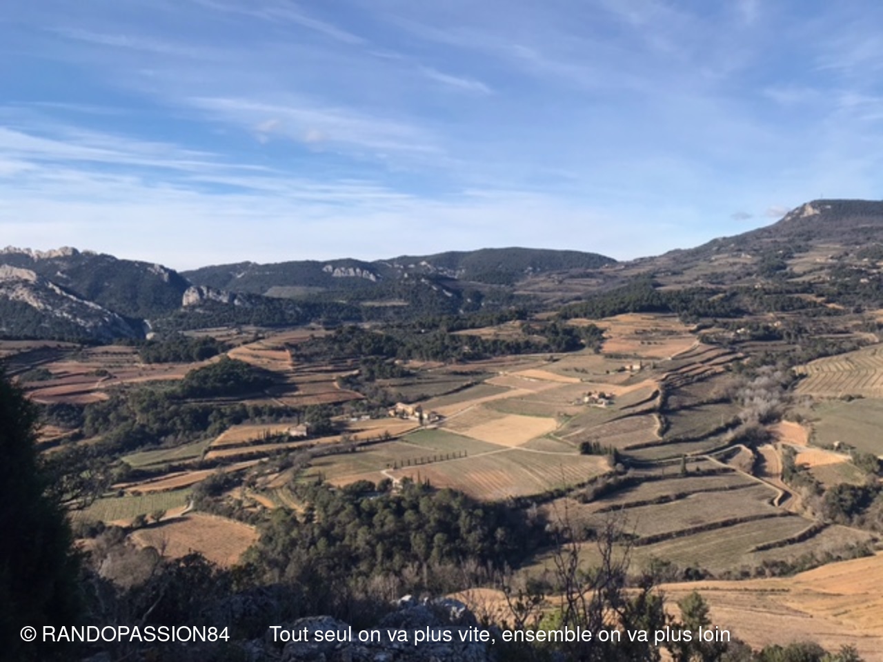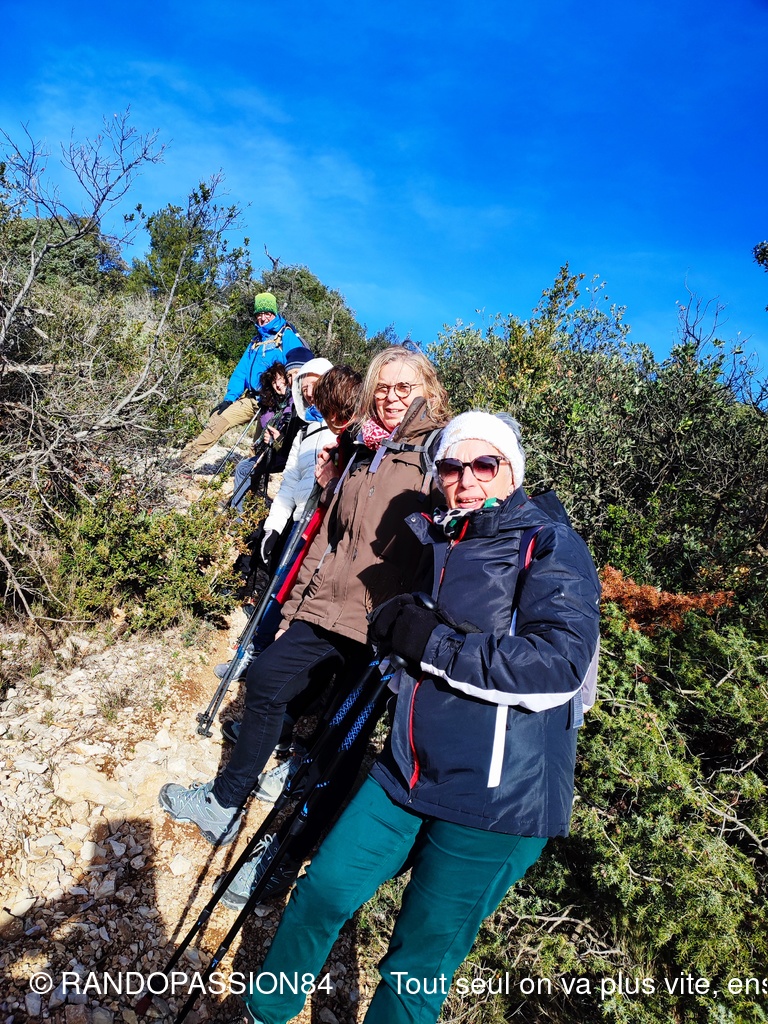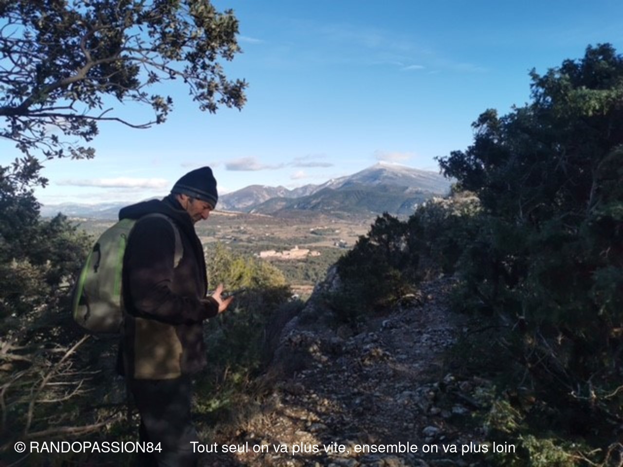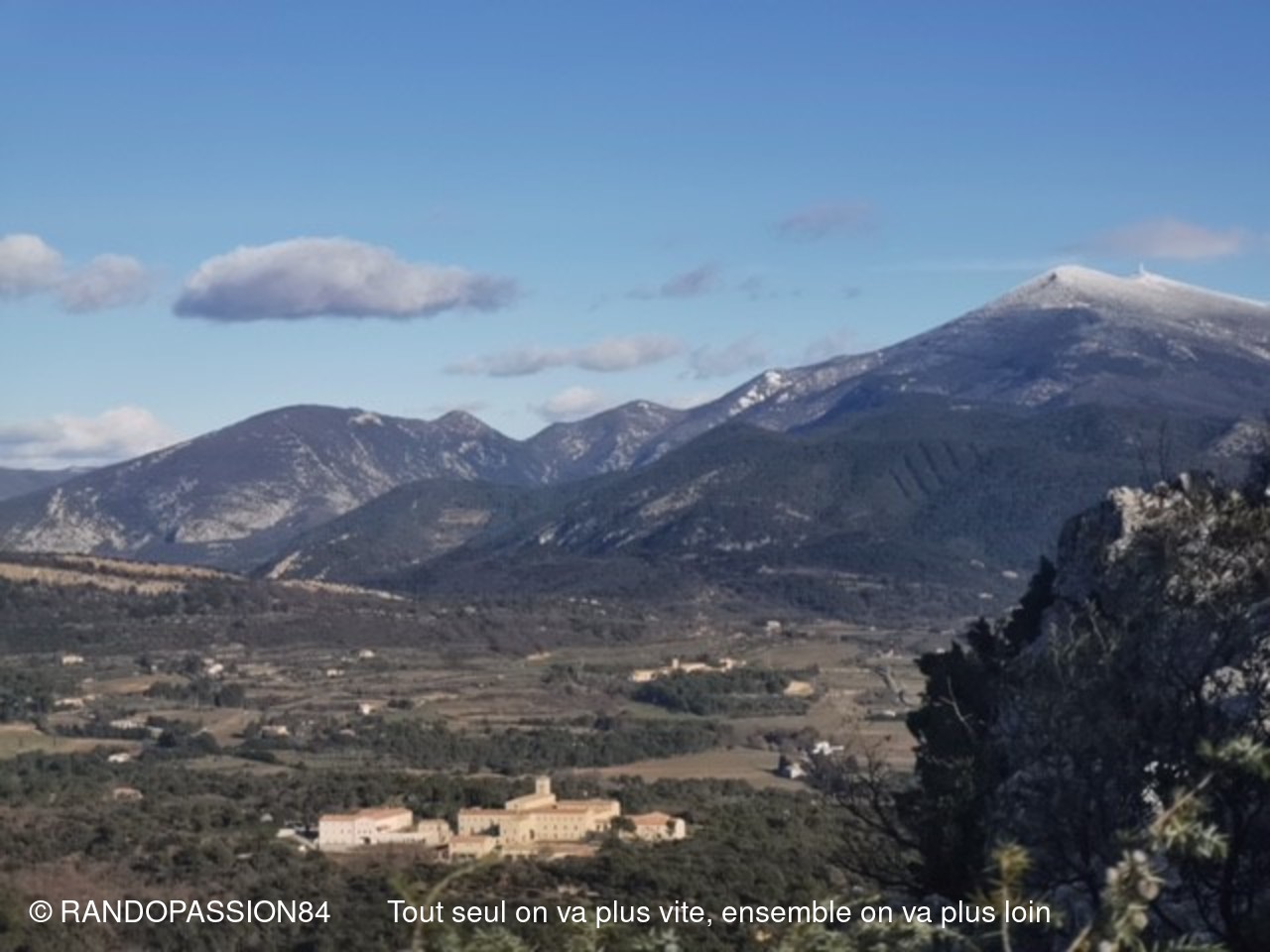 Le soleil était au rendez-vous pour cette randonnée autour du Barroux mais également le mistral et il nous a fallu un bel équipement de bonnets écharpes, gants, bandeaux ..... comme en témoigne les photos, pour affronter ce vent glacial. Mais bien équipés quel plaisir de découvrir où de redécouvrir ces paysages . D'un côté ou de l'autre de la vallée ce fut l'émerveillement  avec à l'horizon les lointains sommets enneigés qui nous rappellent que nous sommes au coeur de l'hiver.