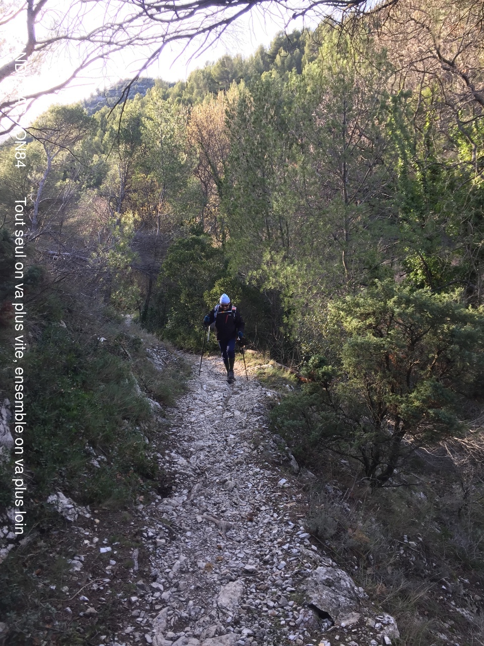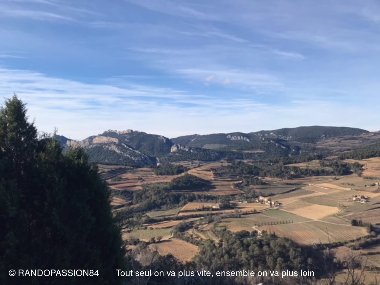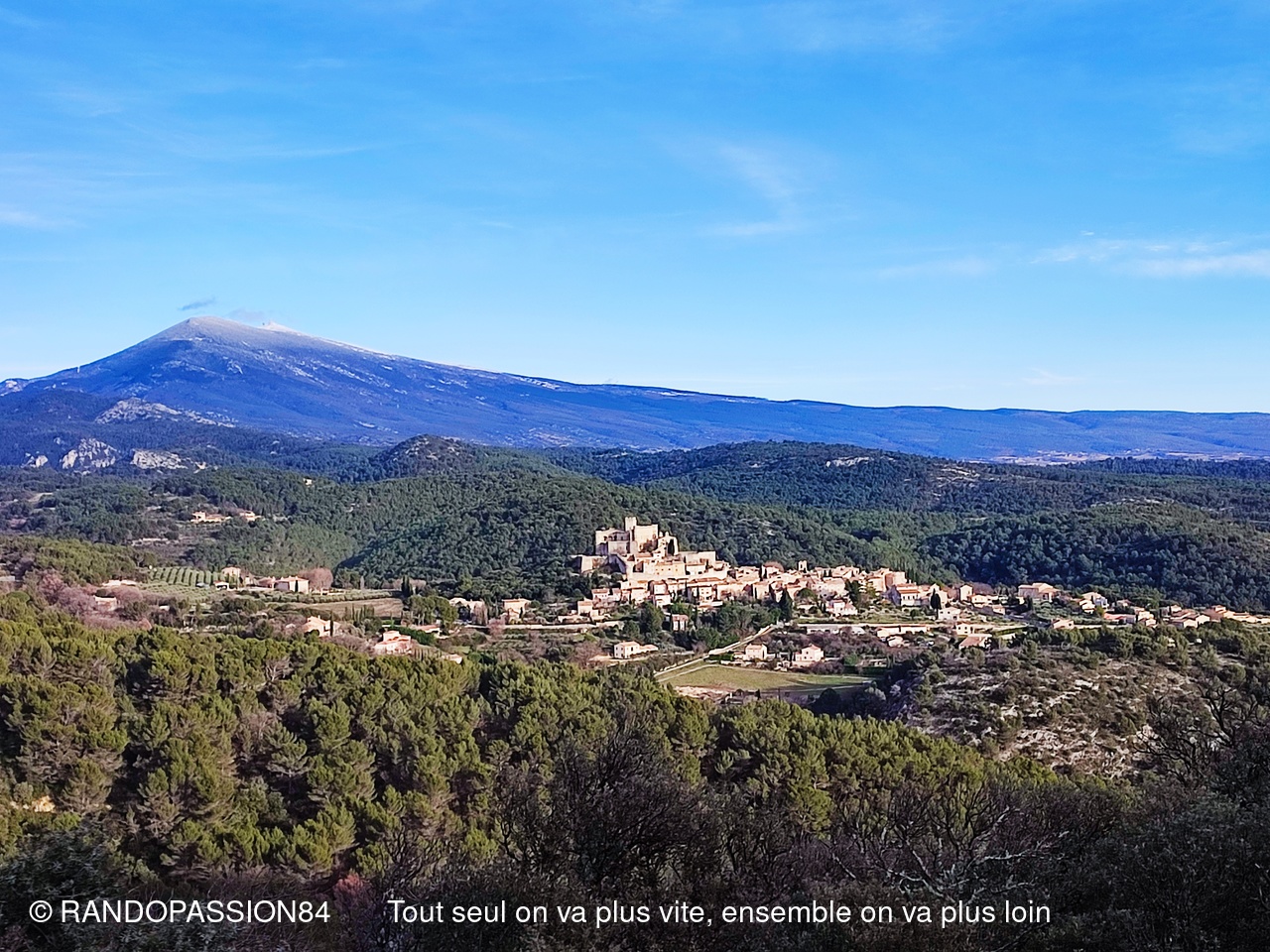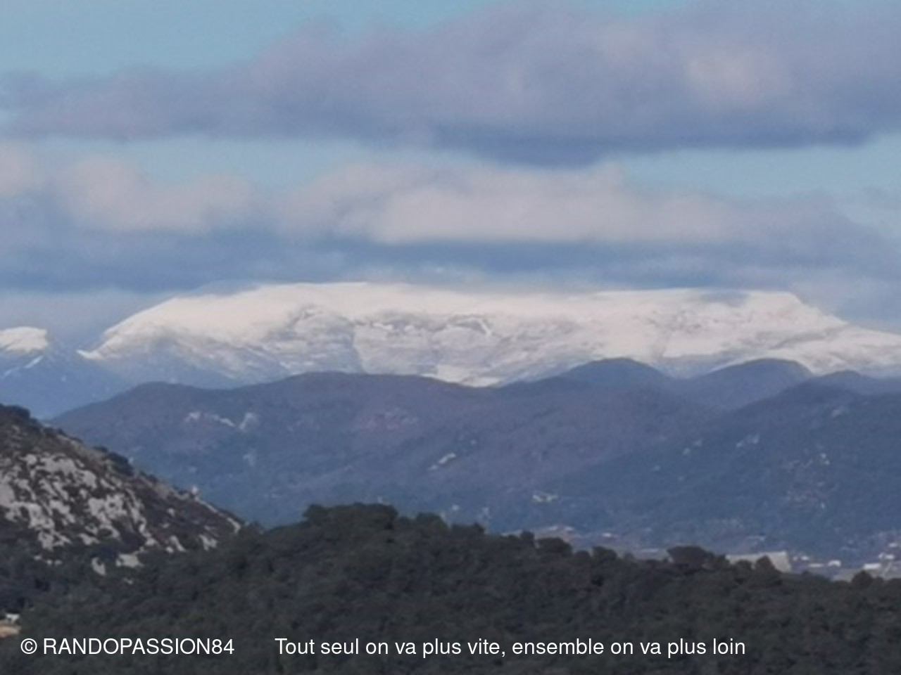 Le soleil était au rendez-vous pour cette randonnée autour du Barroux mais également le mistral et il nous a fallu un bel équipement de bonnets écharpes, gants, bandeaux ..... comme en témoigne les photos, pour affronter ce vent glacial. Mais bien équipés quel plaisir de découvrir où de redécouvrir ces paysages . D'un côté ou de l'autre de la vallée ce fut l'émerveillement  avec à l'horizon les lointains sommets enneigés qui nous rappellent que nous sommes au coeur de l'hiver.