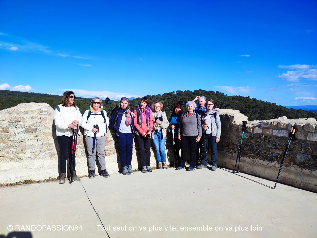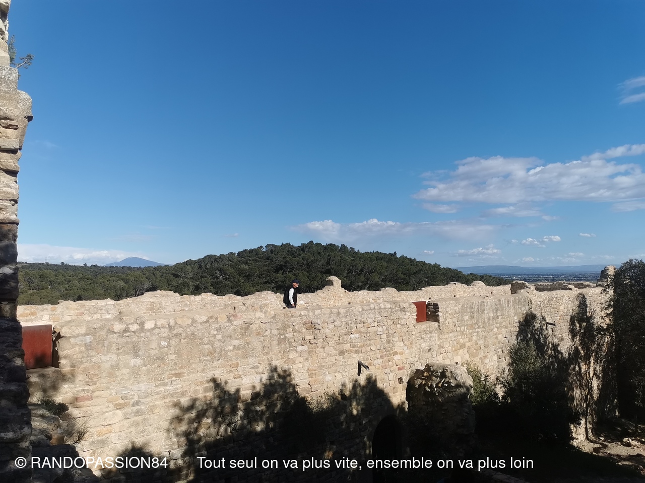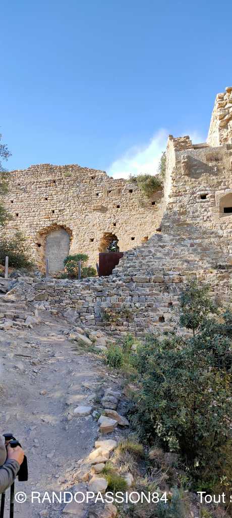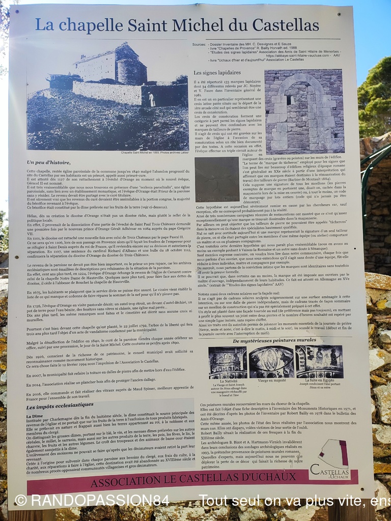 La randonnée s'est terminée par un passage à la chapelle Saint Michel avant la montée au Château qui a fait l'objet d'une très belle réhabilitation avec au pied des espaces détentes bien aménagés et fleuris, et qui offre de sa plate forme un magnifique panorama sur la vallée du Rhône, la plaine d'Orange et notre inséparable Ventoux.