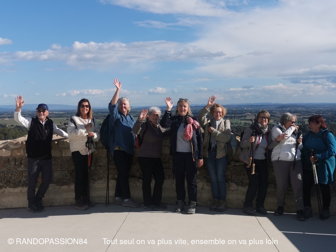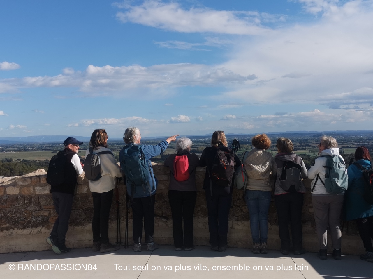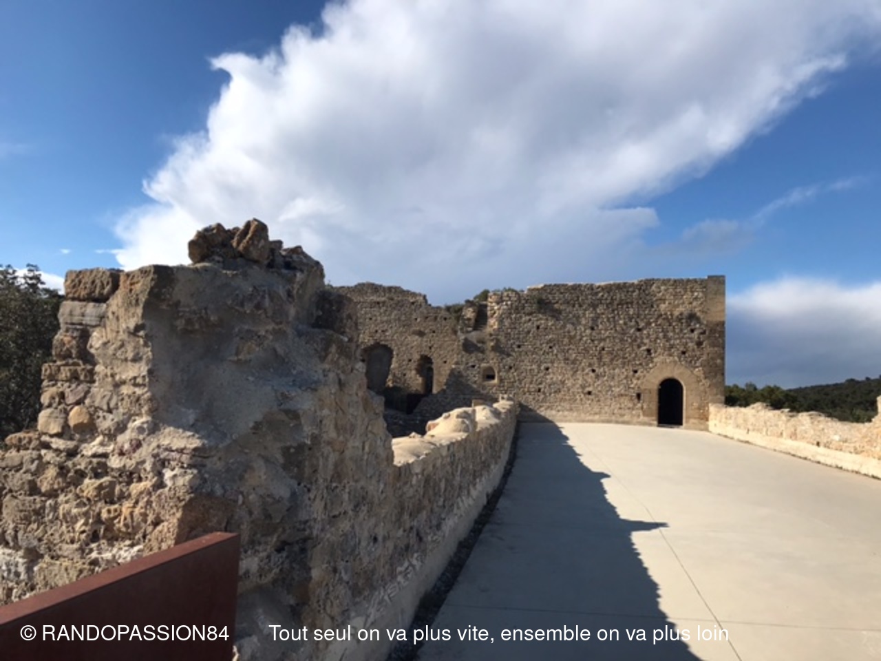 La randonnée s'est terminée par un passage à la chapelle Saint Michel avant la montée au Château qui a fait l'objet d'une très belle réhabilitation avec au pied des espaces détentes bien aménagés et fleuris, et qui offre de sa plate forme un magnifique panorama sur la vallée du Rhône, la plaine d'Orange et notre inséparable Ventoux.