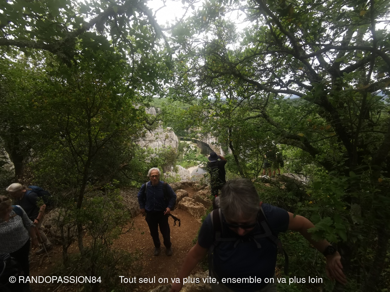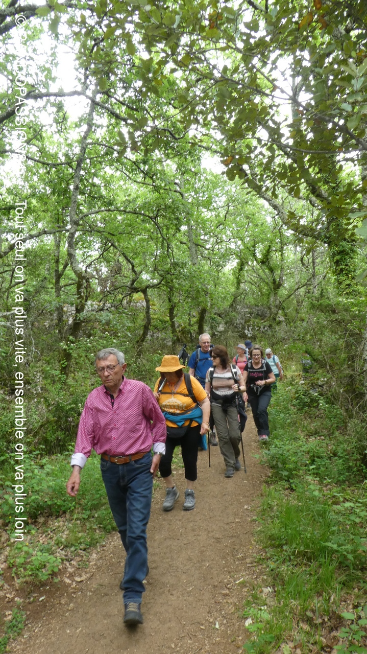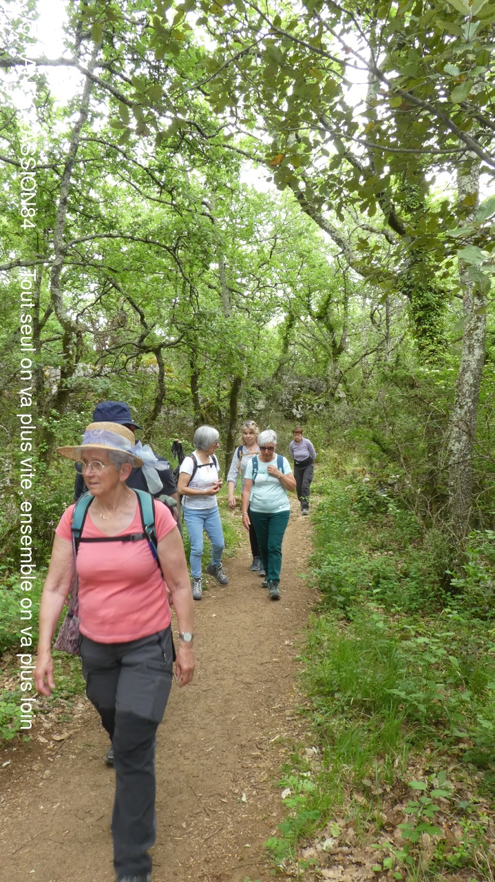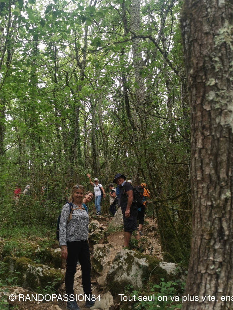 Nous sommes 21 à cheminer sur les sentiers de ce bois aux rochers aux formes fanrtasmagoriques et à en prendre pelin les yeux sur la cordniche du Chassezac.