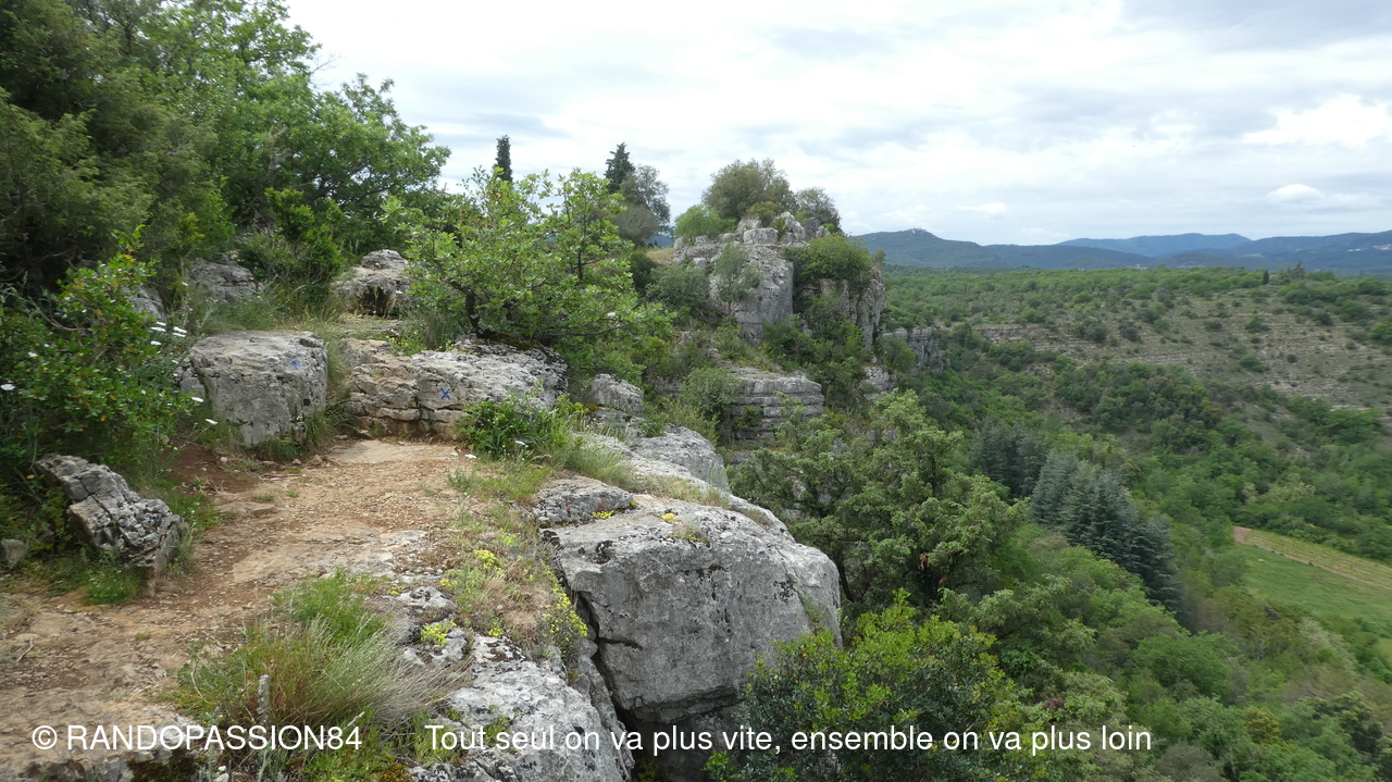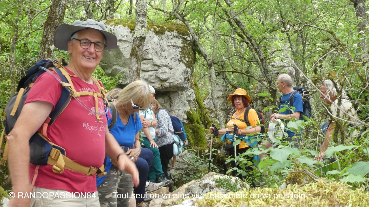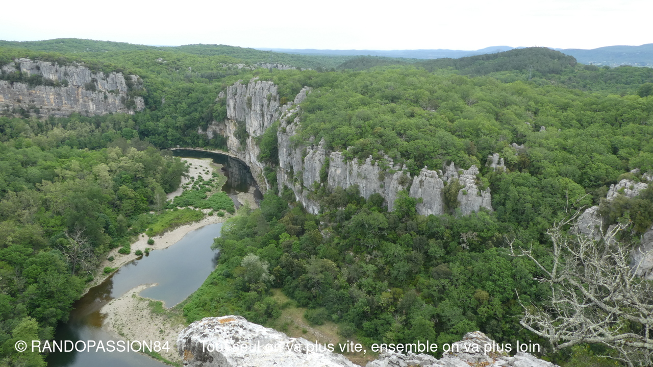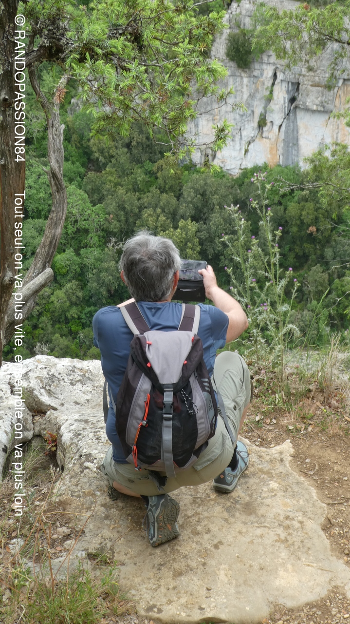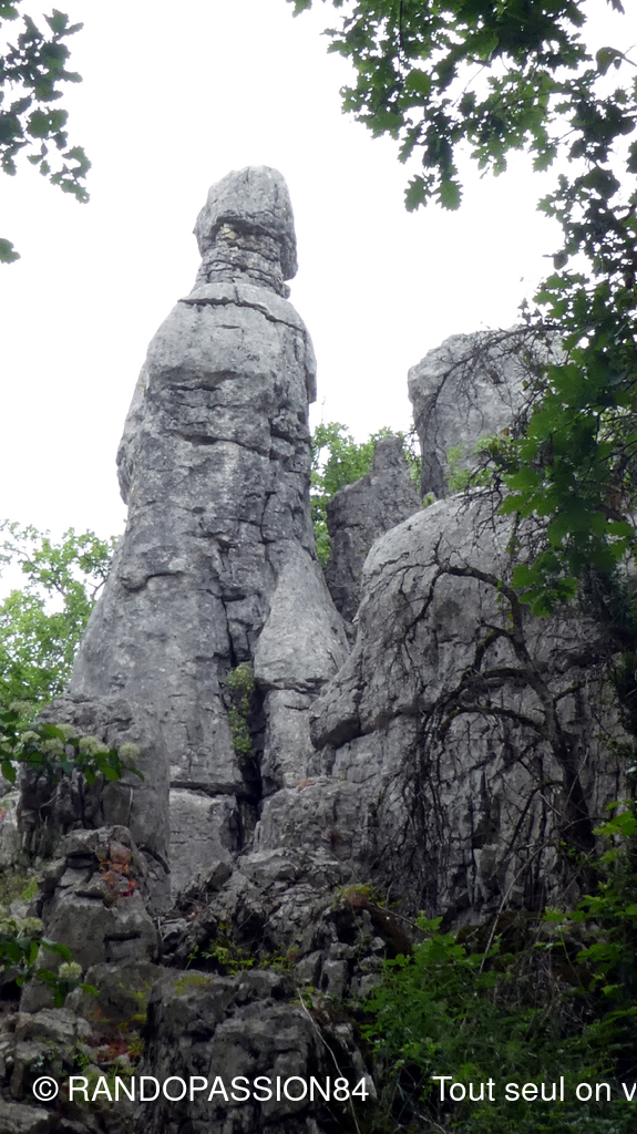 Nous sommes 21 à cheminer sur les sentiers de ce bois aux rochers aux formes fanrtasmagoriques et à en prendre pelin les yeux sur la cordniche du Chassezac.