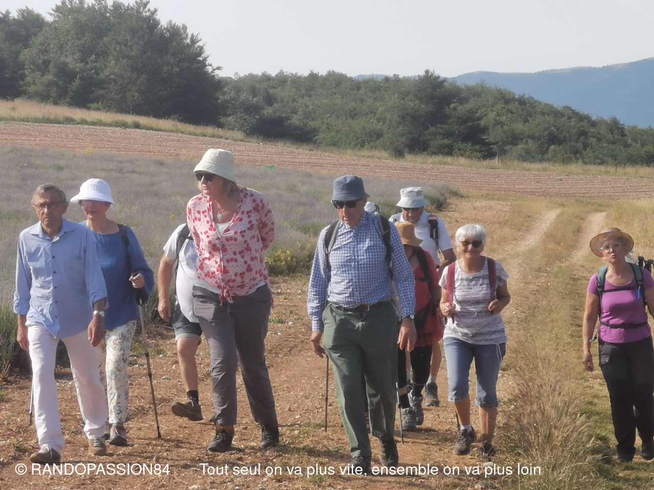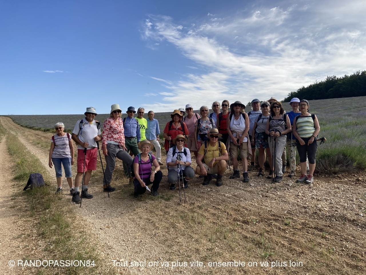 La randonnée des lavandes de ce jeudi 7 juillet a cloturé notre saison 2022/2023. Ce fut malgré la chaleur ambiante une randonnée qui nous a apporté l'émerveillement et le plaisir de se retrouver en pleine nature entouré des champs de lavande dans un environnement un peu différent de celui de l'année dernière que nous qualifierons de plus sauvage mais tout aussi beau . Daniel et Jocelyne nous ont en effet emmené sur le plateau d'Albion à plus de 1000 mètres d'altitude ( village le plus haut du pays d'Apt et le plus petit du Vaucluse)  sous le ciel le plus pur d'Europe à Lagarde d’Apt, domaine de grands espaces avec de vastes champs de lavande vraie, d’incomparables sous-bois et de forêts sauvages. Nous avons ensuite passé un très bon moment à la ferme des Esfourniaux très sympathique auberge familiale avec en prime cuisine de leur production généreuse et conviviale.On se donne tous rendez-vous en Septembre pour une nouvelle saison avec Randopassion 84.