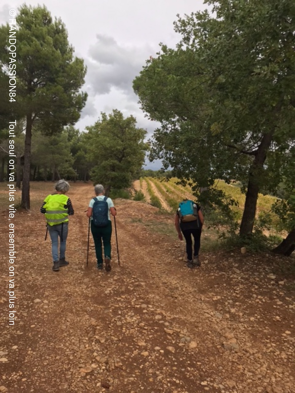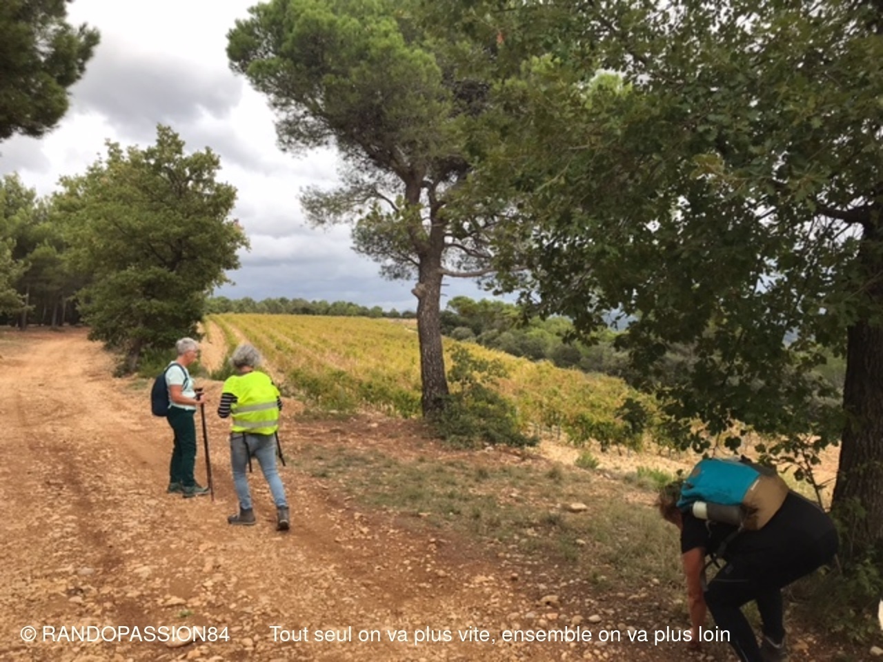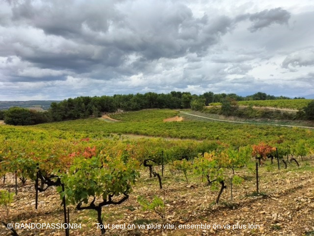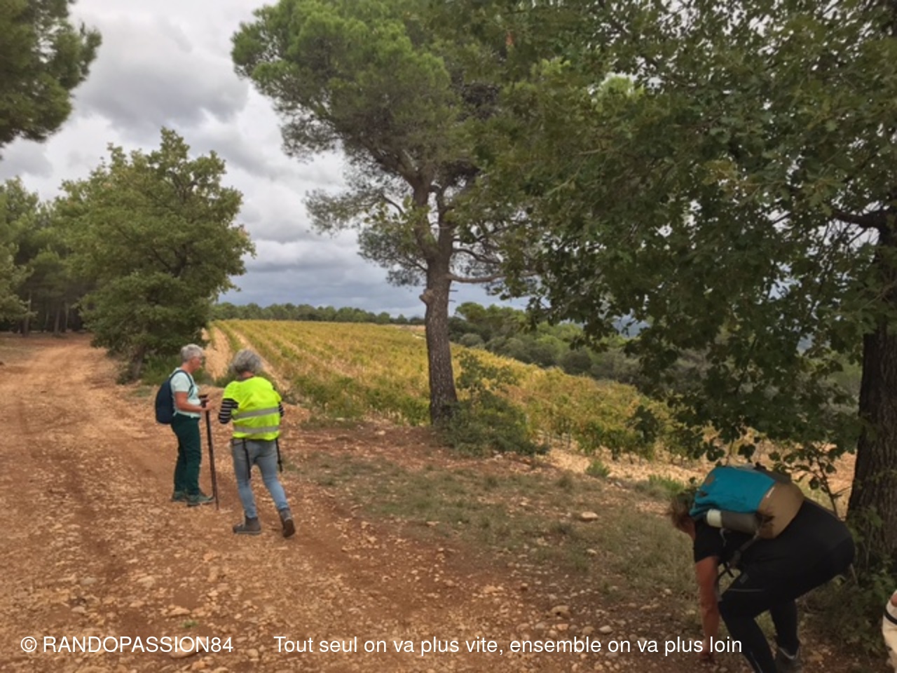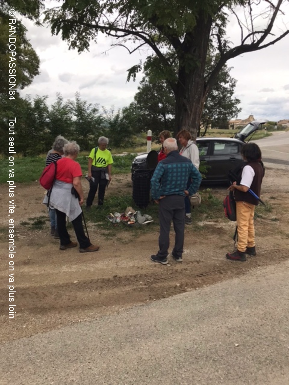 C'est un groupe restraint de randonneurs ( 4 pour le groupe 1 et 5 pour le groupe 2 ) qui s'est retrouvé sur les chemins de Buisson . Peur du vent, de la pluie peut être pour certains et pourtant même si le ciel est resté sombre :  quelle douceur ! Pas de pluie. Nous avons même eu plutôt chaud et il nous a fallu vite enlever les vestes du départ . On a même entendu dire : "si j'avais su j'aurais mis le short". (Sic Carine)