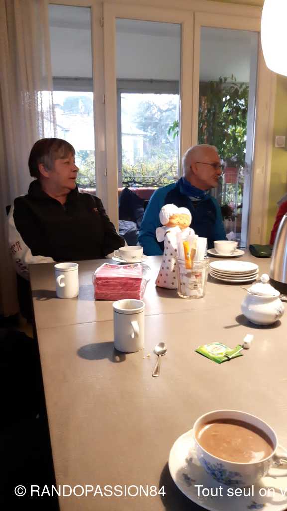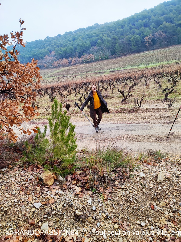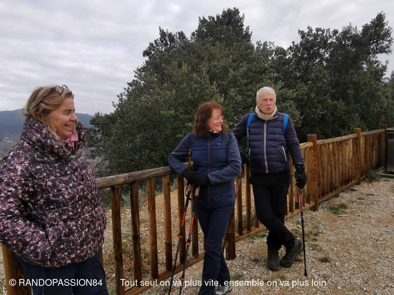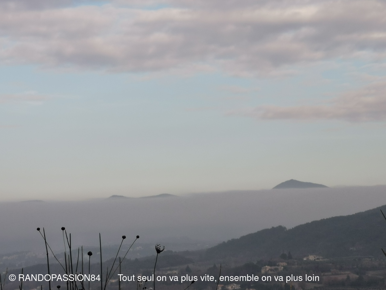 Le groupe 1 se limitant à 3 randonneurs, le groupe 2 à 9, il manquait un peu d'équilibre c'est pourquoi  il a été décidé de faire un groupe intermédiaire que nous rebaptiserons  "groupe 3".  Une façon de bien intégrer Sylvie nouvelle dans le groupe et à qui nous souhaitons la bienvenue. Une boucle de 7 à 8 Km qui après une belle petite montée nous a emmené sur les hauteurs de Vaison dans une ambiance brumeuse et humide mais sans pluie .