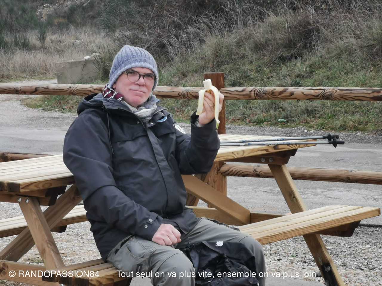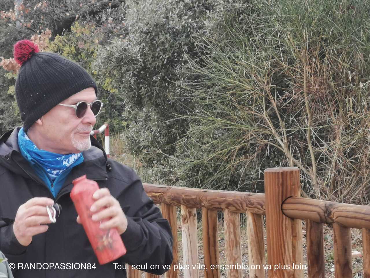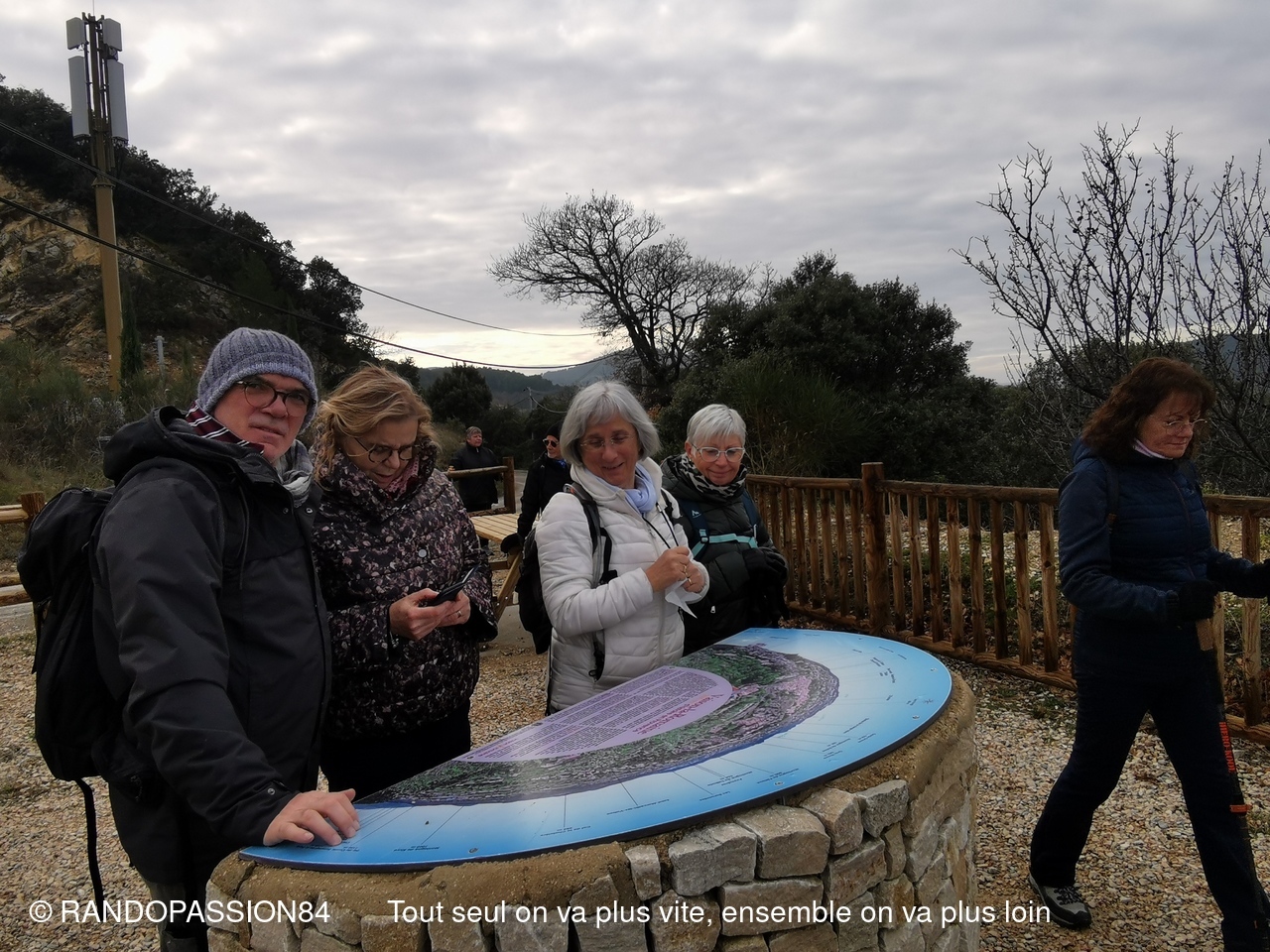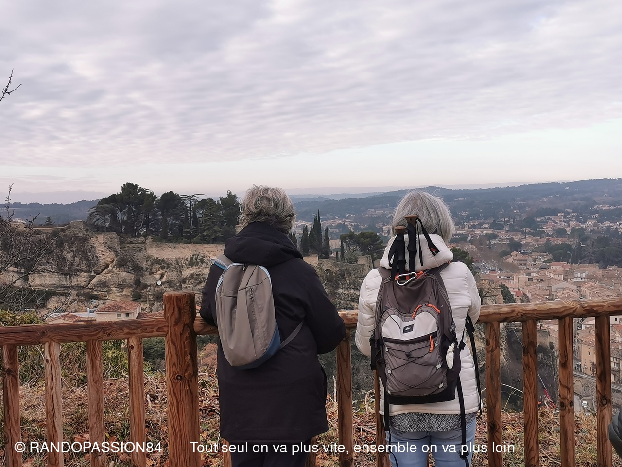 Le groupe 1 se limitant à 3 randonneurs, le groupe 2 à 9, il manquait un peu d'équilibre c'est pourquoi  il a été décidé de faire un groupe intermédiaire que nous rebaptiserons  "groupe 3".  Une façon de bien intégrer Sylvie nouvelle dans le groupe et à qui nous souhaitons la bienvenue. Une boucle de 7 à 8 Km qui après une belle petite montée nous a emmené sur les hauteurs de Vaison dans une ambiance brumeuse et humide mais sans pluie .