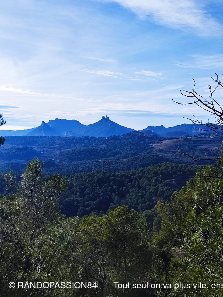 Cette boucle nous a emmené jusqu'au Barroux avec à chaque fois des points de vue magnifique sur le Saint Amand qui ne nous a pas quitté à se demander si nous on ne tournait pas en rond (ce n'est pas Carine qui nous contredira ) et les majestueuses dentelles de Montmiriail qui se sont éclairées en début d'après midi pour notre plus grand plaisir.