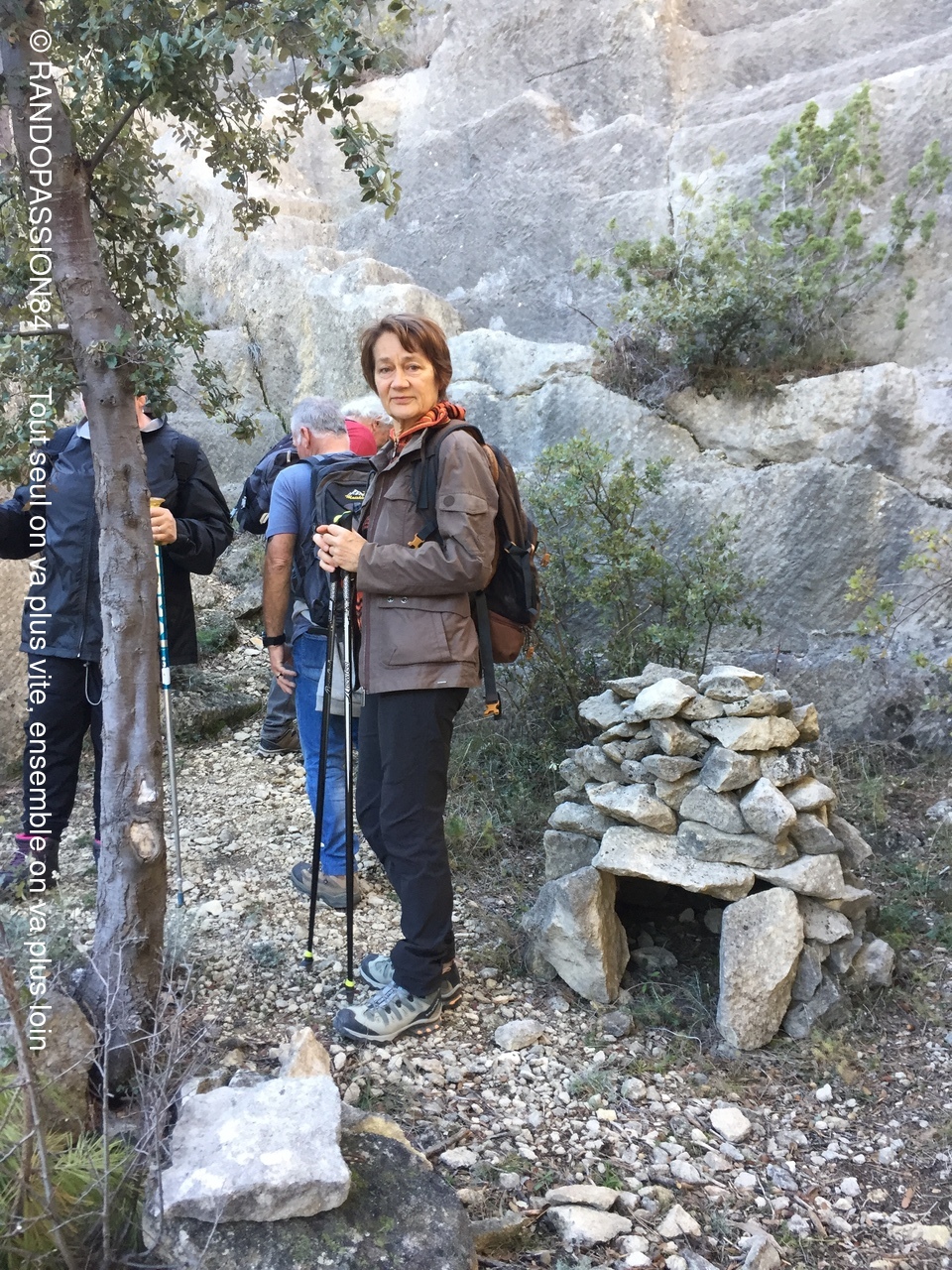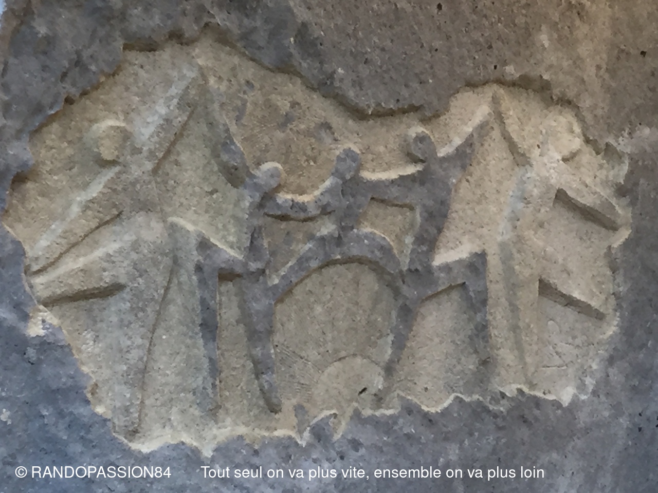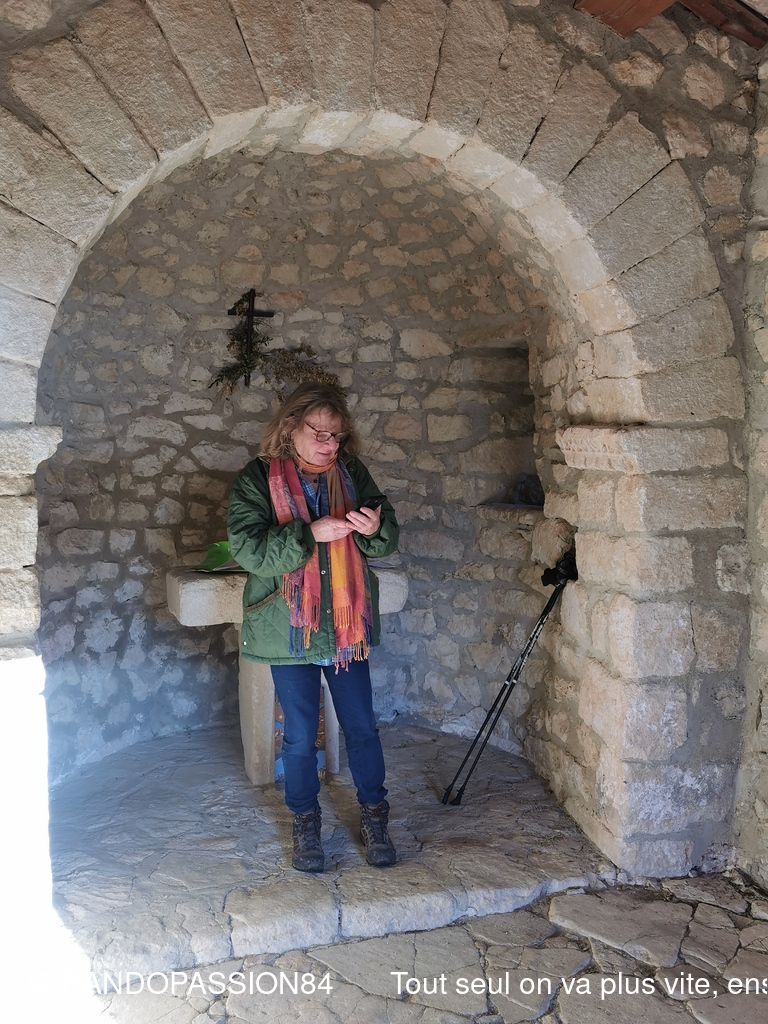 Au fil du chemin nous avons pu admirer de curieuses sculptures taillées à même les parois ainsi que les traces de chariots creusés dans le calcaire de la piste. Nous avons terminé par un passage rapide à la chapelle du Saint Sépultre. Le programme proposée par Sabine a pu être bouclé. Merci à elle pour cette belle randonnée et ce voyage dans le temps.