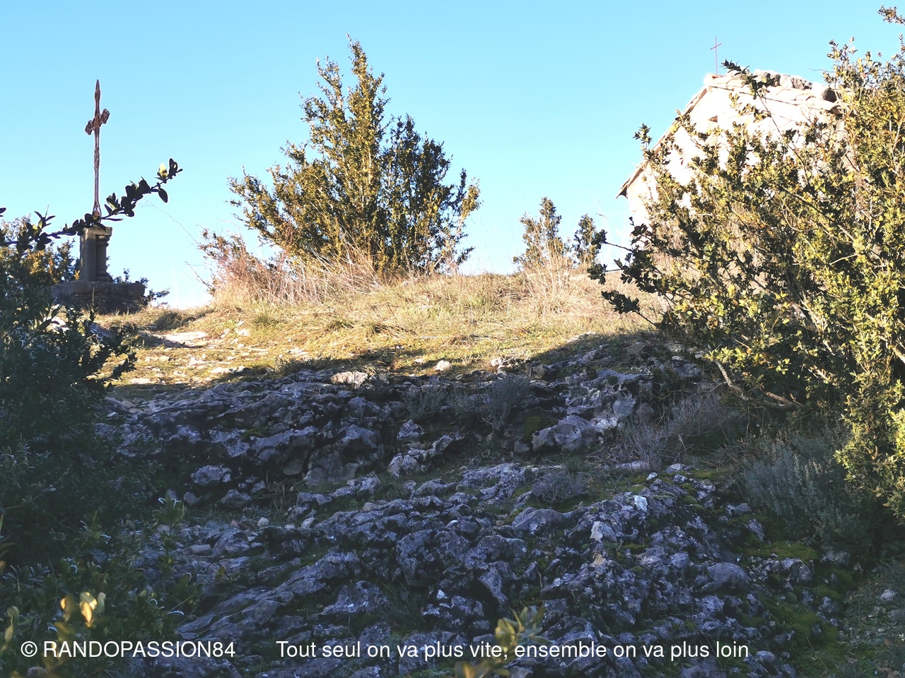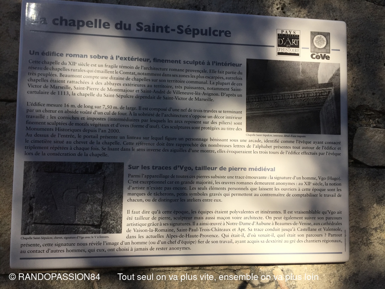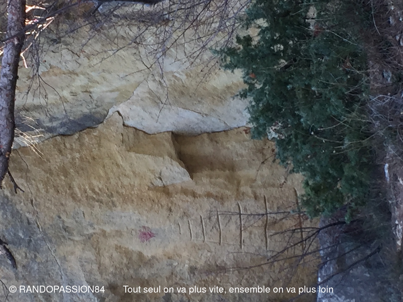 Au fil du chemin nous avons pu admirer de curieuses sculptures taillées à même les parois ainsi que les traces de chariots creusés dans le calcaire de la piste. Nous avons terminé par un passage rapide à la chapelle du Saint Sépultre. Le programme proposée par Sabine a pu être bouclé. Merci à elle pour cette belle randonnée et ce voyage dans le temps.