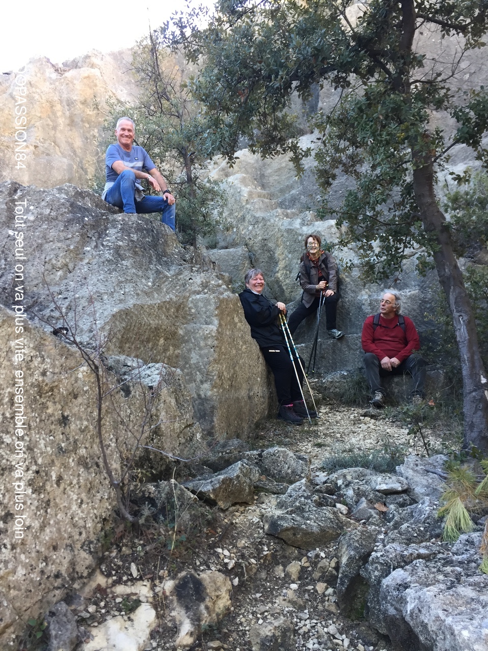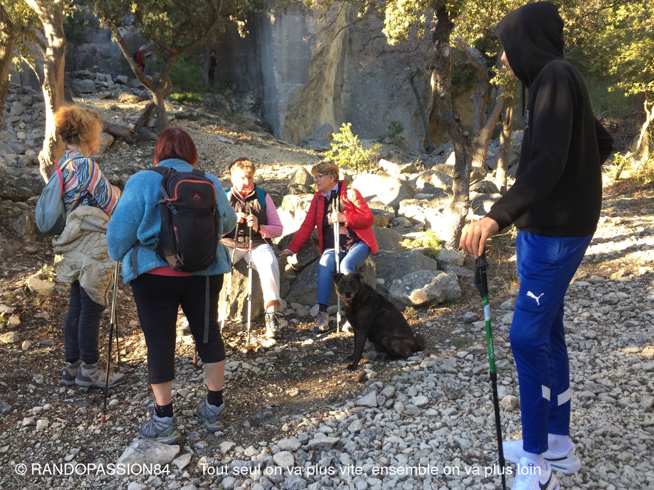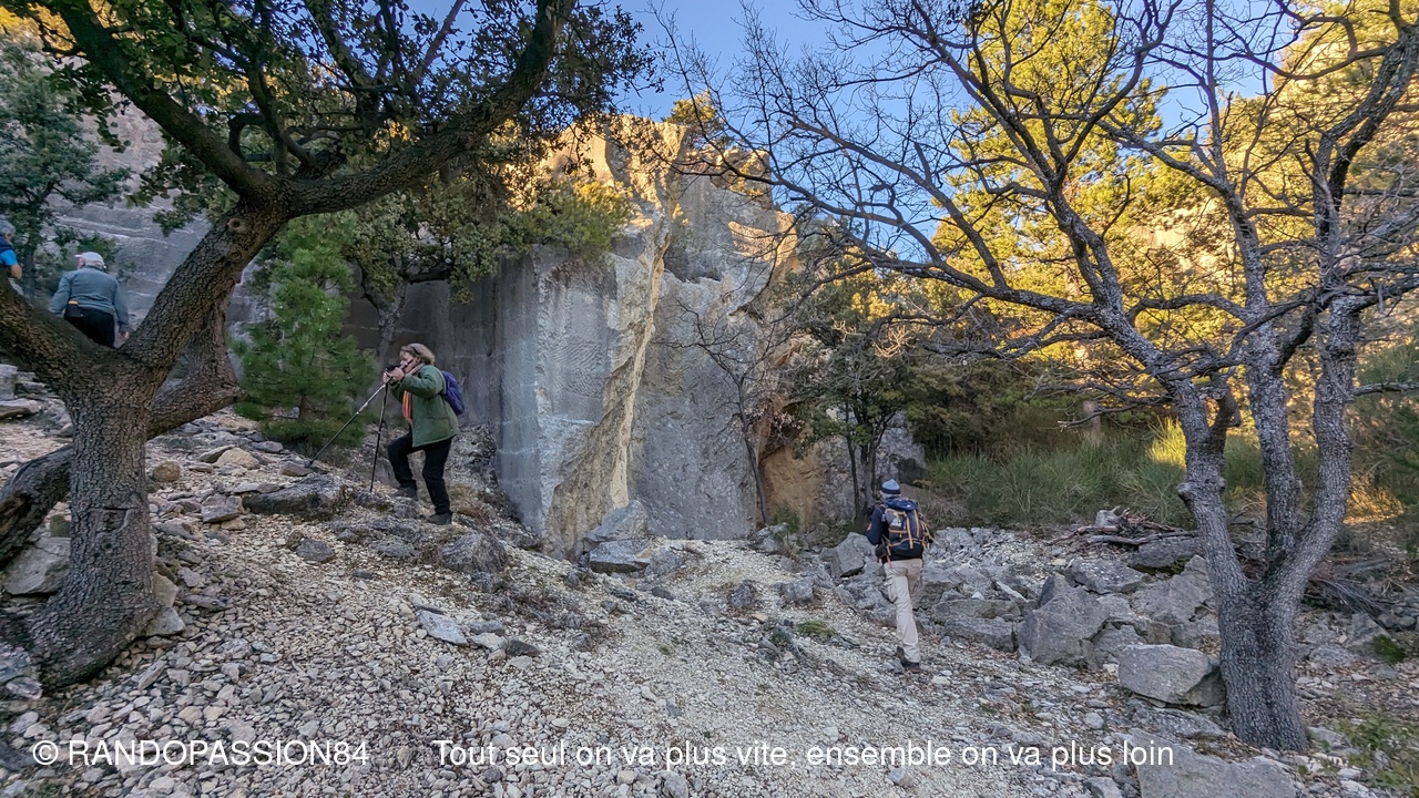 Nous avons été gatés ce jeudi pour ces deux randonnées proposées par Sabine avec une météo printanière et une nature majestueuse .Deux groupes équilibrés avec chacun 9 randonneurs ont arpenté les chemins de Beaumont du Ventoux : une visite groupée à la chapelle Sainte Marguerite puis une montée très sportive pour le groupe 2 en direction de la chapelle Sainte Sidoine suivie d'une descente assez abrupte et caillouteuse, mais compensée par un décor de rêve. Les deux groupes se sont ensuite croisés sur les chemins plus cool du bas menant aux carrières . Ces carrières romaines qui sont maintenant abandonnées semblent émerger de la garrigue: un lieu très insolite entre la végétation folle et les angles parfaitement géométriques des zones d'extraction. Il faut savoir que la pierre de Beaumont du Ventoux a servi à construire Vasio Vocontiorum la très riche capitale du peuple des Voconces qui est maintenant Vaison la Romaine qui se siue à 13km.
