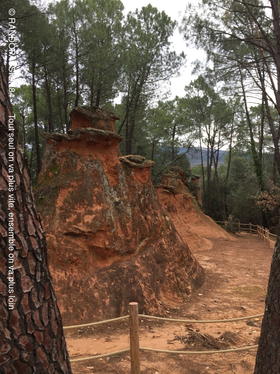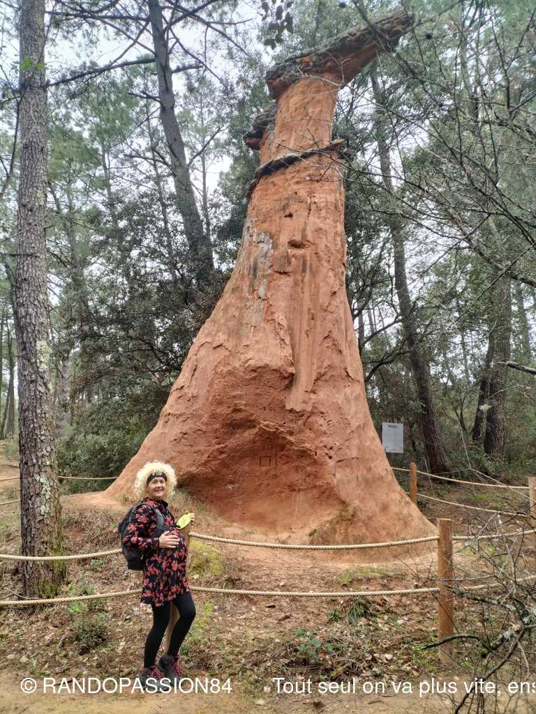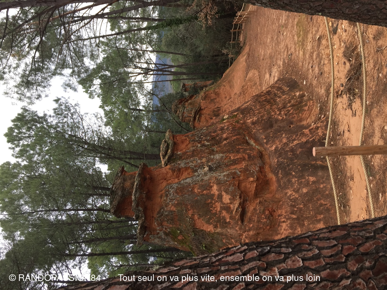 Dans d'anciennes carrières de sable ocreux, les eaux de pluie, le vent et le gel, ont sculpté CE paysage étonnant. . Ces fameuses Demoiselles Coiffées, se cachent au milieu d’une forêt de chênes et de pins. Appelée cheminée de fée, qui font toute la renommée de ce site merveilleux, ces Demoiselles Coiffées, appelées aussi « cheminées de fées » sont une sorte de grande colonne naturelle faite de roches friables, le plus souvent sédimentaires, et dont le sommet est constitué d’une roche résistant mieux à l’érosion (coiffe) L’itinéraire permet de découvrir également les villages de Bédoin, des Baux et le hameau des Fébriers.
